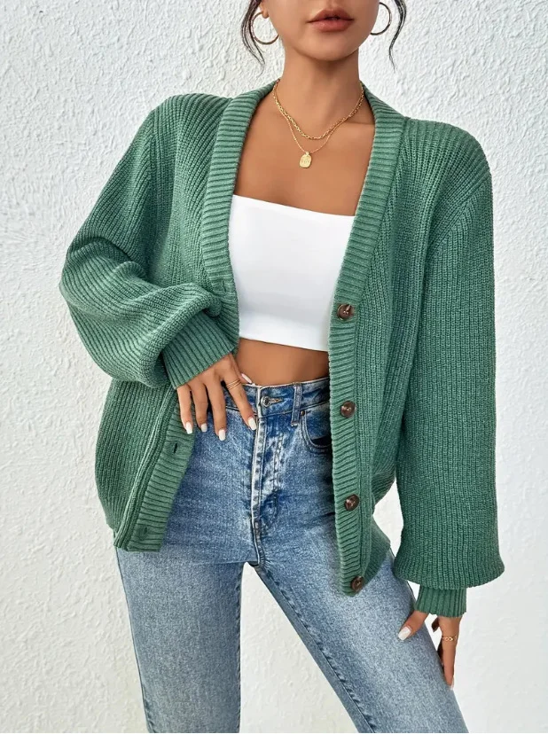 Nigikala Nigikala Women's Sweater V-Neck Cardigan Autumn And Winter Solid Knitted Shirt Casual Knitted Coat