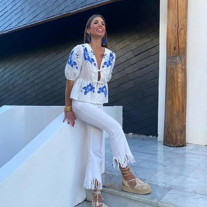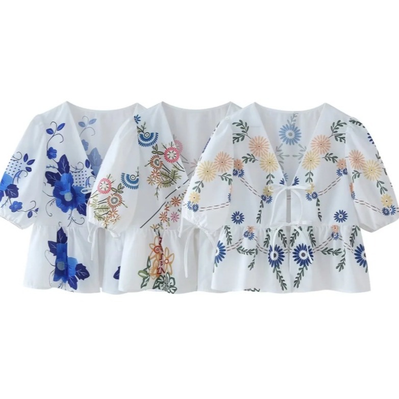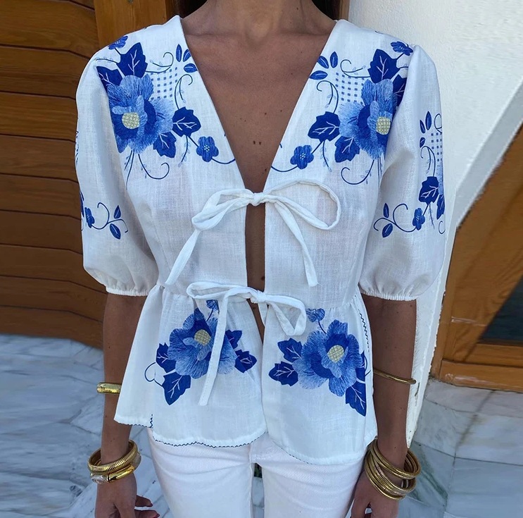 Nigikala Nigikala Women's V-Neck Tie With Printed Short-Sleeved Top - Explosive Long-Term Stocking Assured Shelves