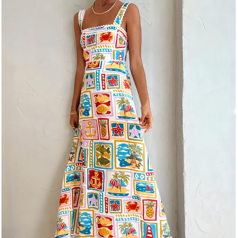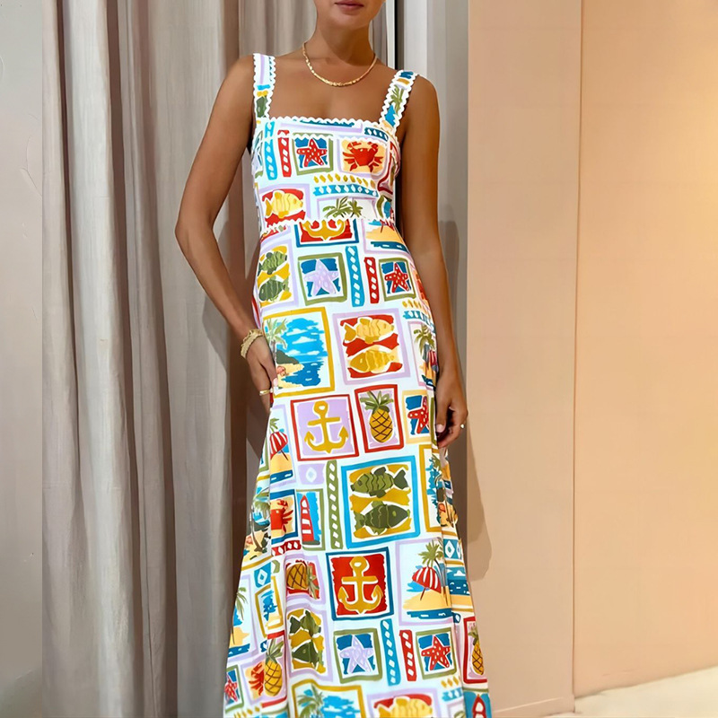 Nigikala Nigikala Women's Wear 2024 Fashion Personality Graffiti Sling With Breast Temperament Large Hem Dress Female