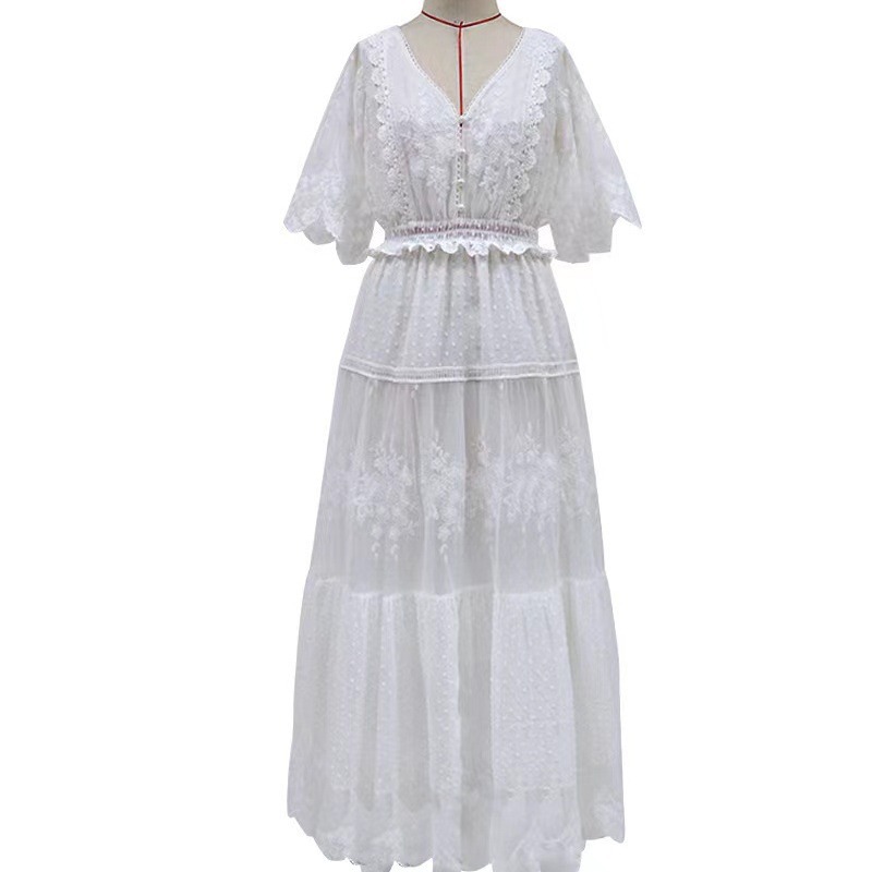 Nigikala Nigikala Women's Wish V-Neck Short-Sleeved Lace Dress For Summer 2025
