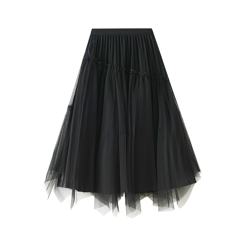 Nigikala Nigikala Yarn Dress Girl Spring New Nail Bead Irregular High Waist Front And Reverse Two Sides Wear Medium Long Yarn Skirt 2002