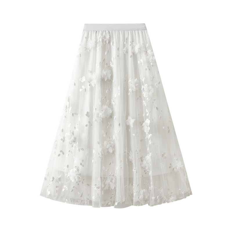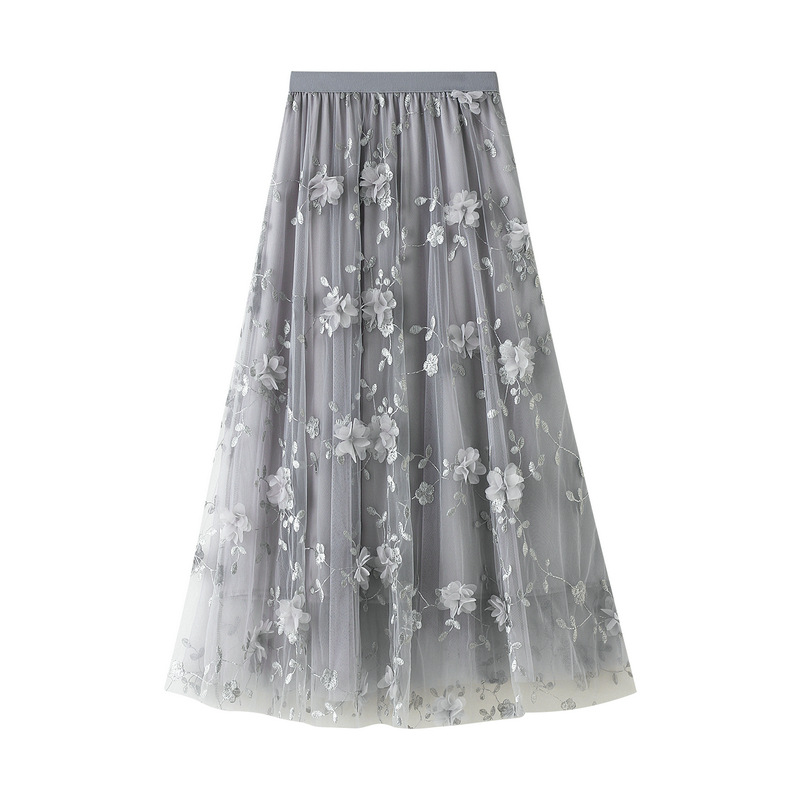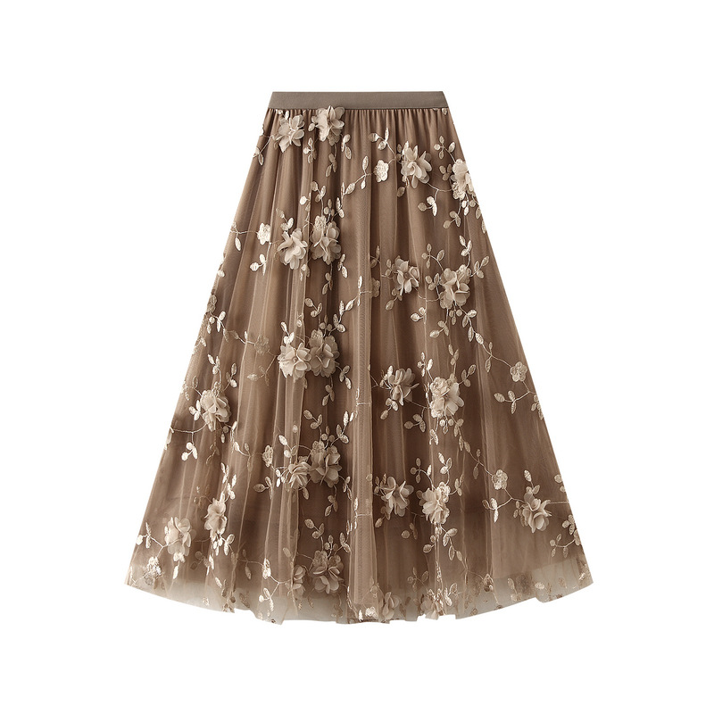 Nigikala Nigikala Yarn Embroidery Heavy Industry Half-Body Skirt Large-Size Dress 2025 Spring New A Word High-Waist Long Skirt 8692