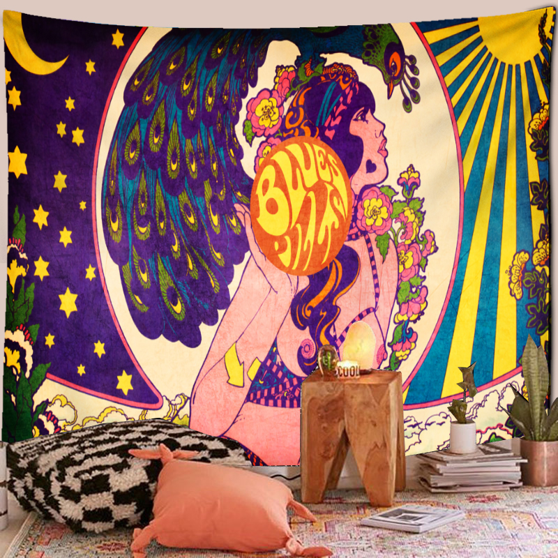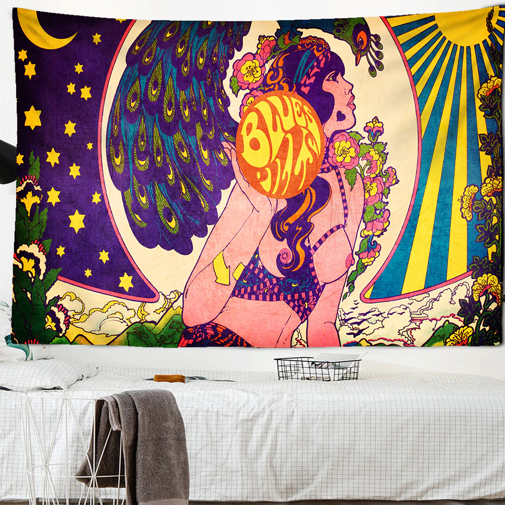Nigikala Sun Moon Tapestry Wall Hanging Psychedelic Art Tapestries Wall Cloth Psychedelic Women Yoga Carpet Boho Decor
