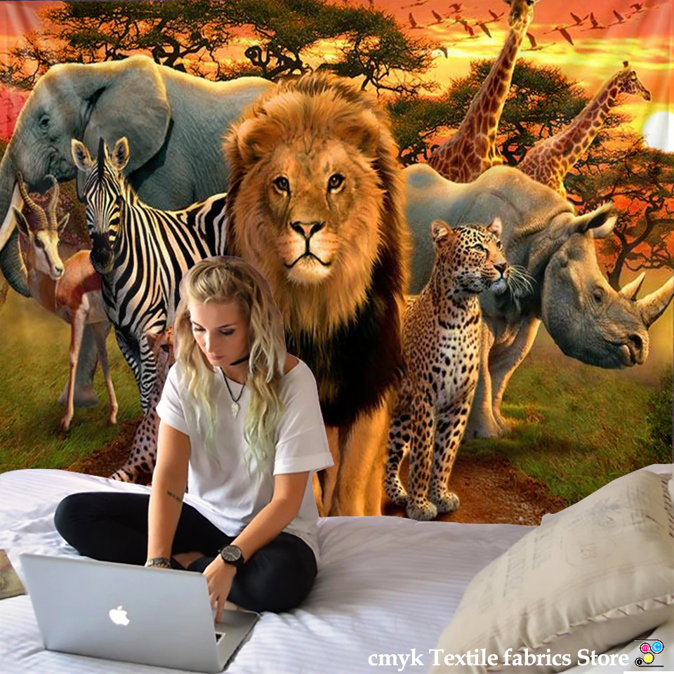 Nigikala tapestry African grassland animals Cartoonwall hanging beach towel thin polyester blanket yoga