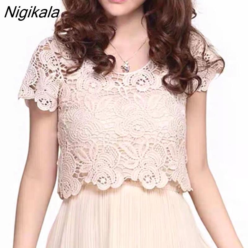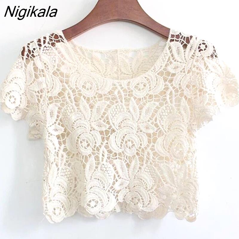 Nigikala Women Hollow Out Cropped All-match Summer Elegant Lady O-neck Short Sleeve Sun-proof Clothing Leisure Female Tops Cozy