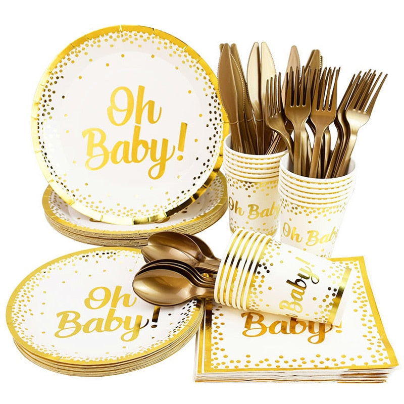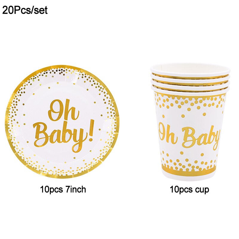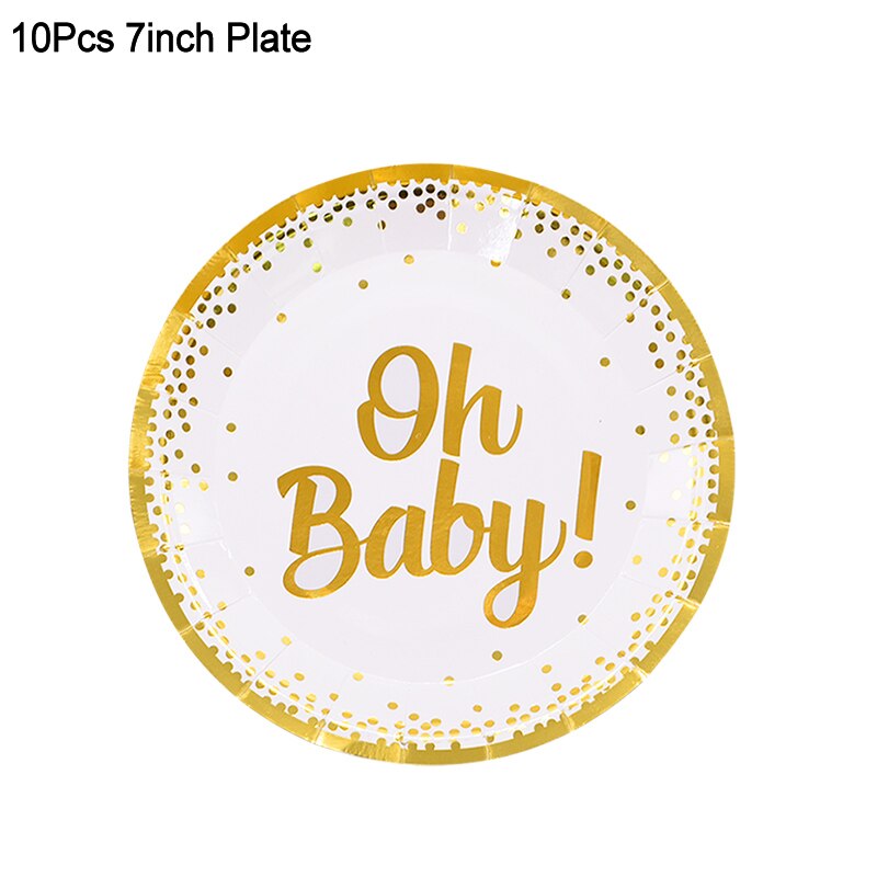 Oh Baby Gold Dot Disposable Tableware Set Boy Girl Baby Shower Favor Gender Reveal Balloon Banner Kids Birthday Party Decoration