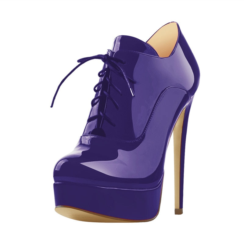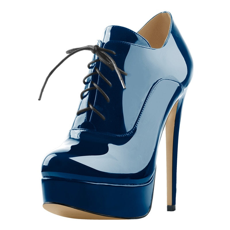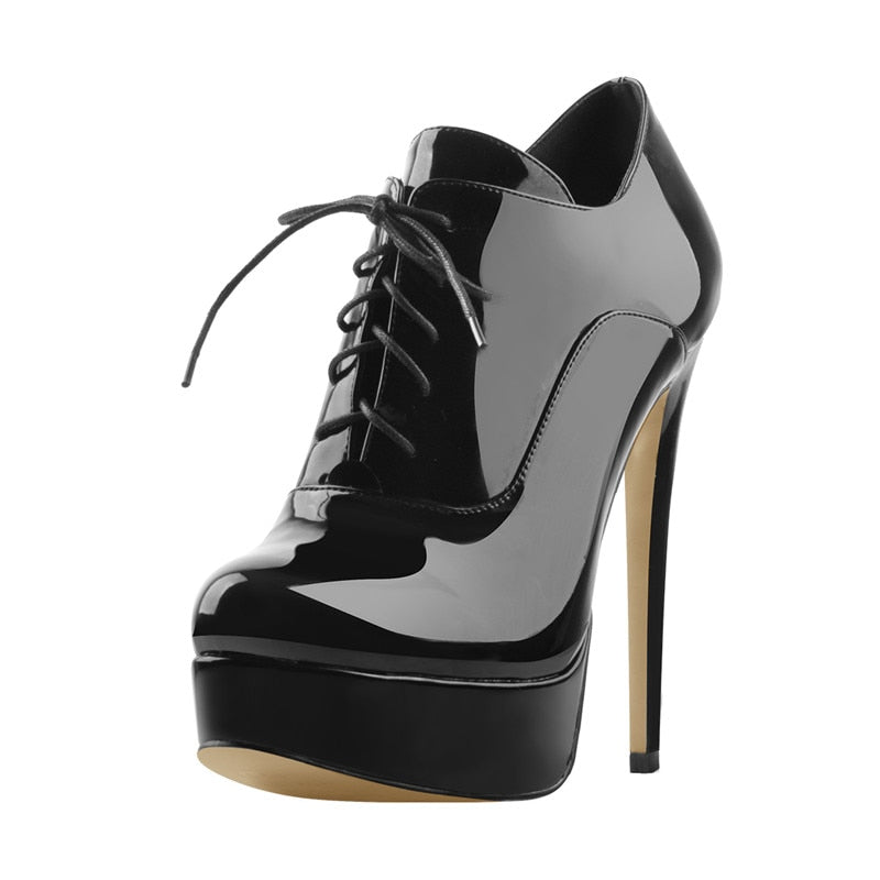 Onlymaker Women's Black Red Platform Ankle Boots High Heels Lace Up Patent leather Stiletto Sexy Lady Fashion Sexy Booties