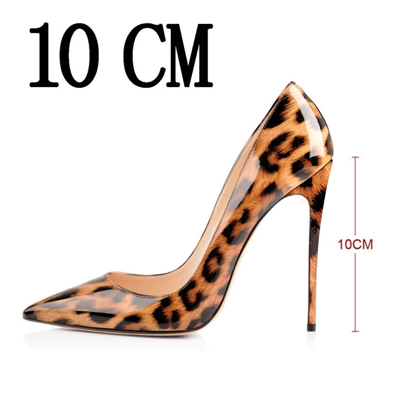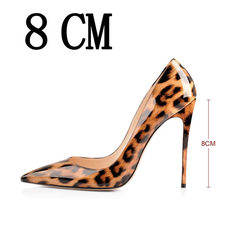 Onlymaker Women's Pointed Toe 8CM 10CM 12CM Thin Heels Leopard Print Sexy Pumps Patent Leather Lady Shoes Big Size US5~US15