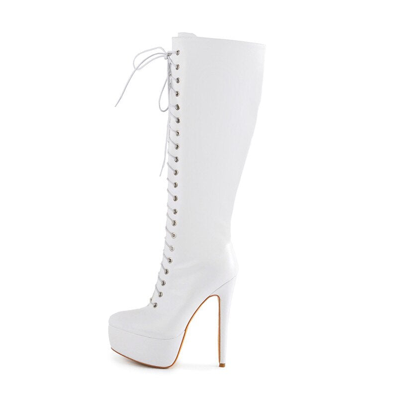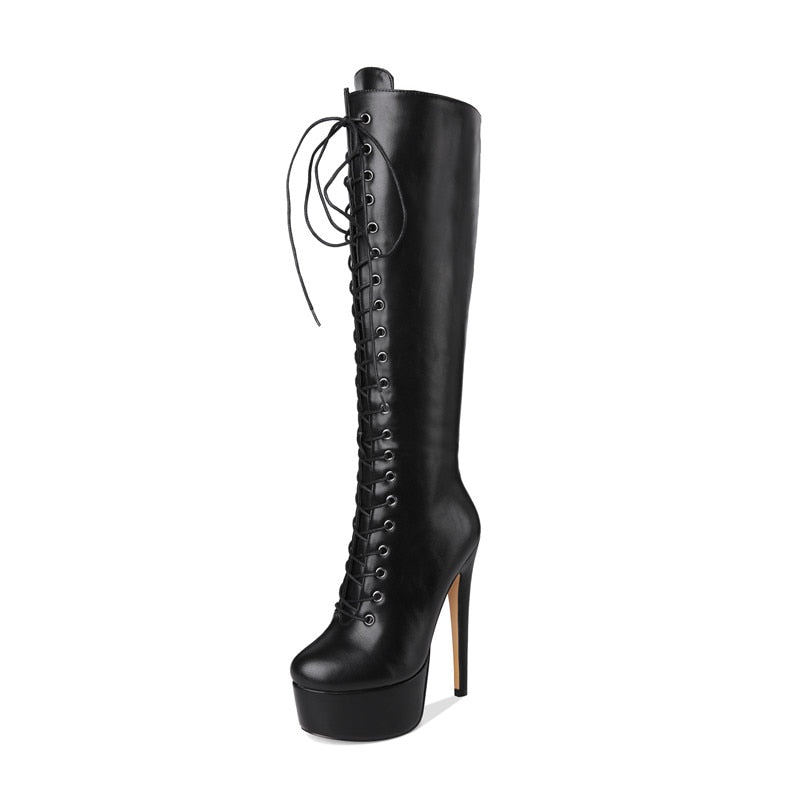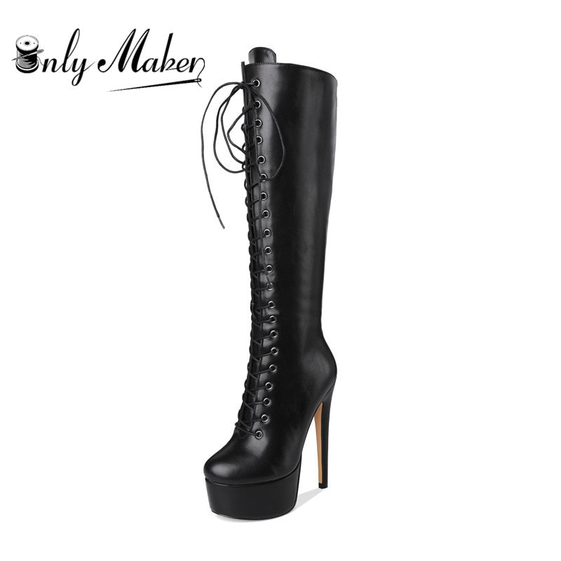 Onlymaker Women's Sexy Platform Over The Knee High Boot Front Lace-Up High Heel Stiletto Stretch US5~US15 Big Size Woman Boots