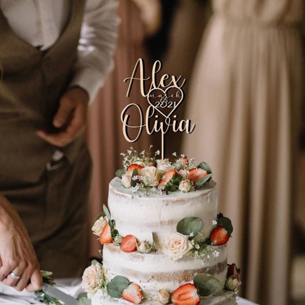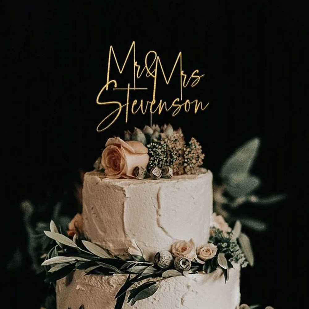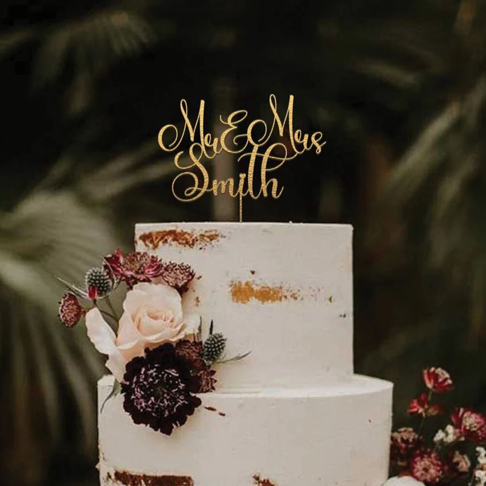 Personalised Wedding Cake Toppers Wooden Happy Birthday Cake Decor Acrylic Mr & Mrs Wedding Engaged Party Anniversary Supplies