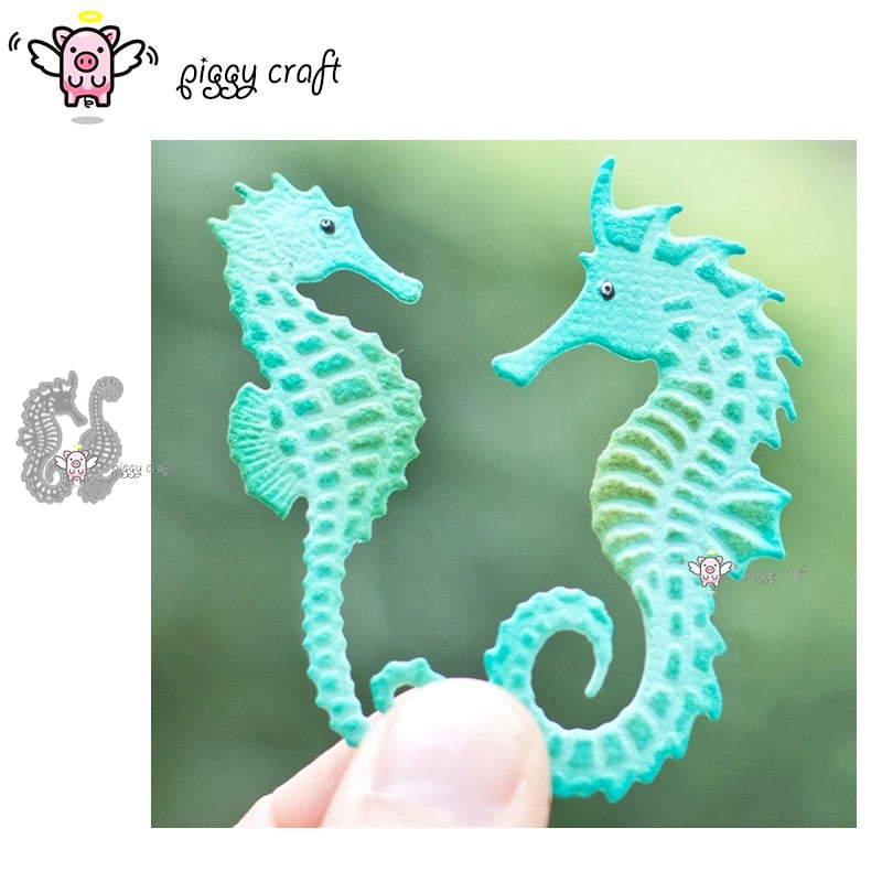 Piggy Craft metal cutting dies cut die mold 2Pcs Seahorse decoration Scrapbook paper craft knife mould blade punch stencils dies