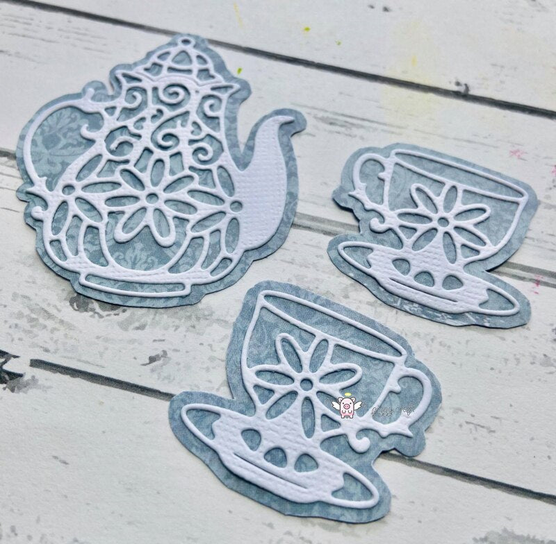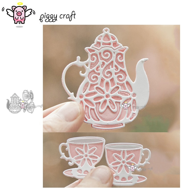 Piggy Craft metal cutting dies cut die mold 3Pcs Flower teapot cup Scrapbook paper craft knife mould blade punch stencils dies