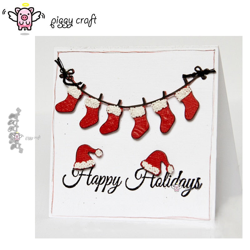 Piggy Craft metal cutting dies cut die mold Christmas socks chain Scrapbook paper craft knife mould blade punch stencils dies