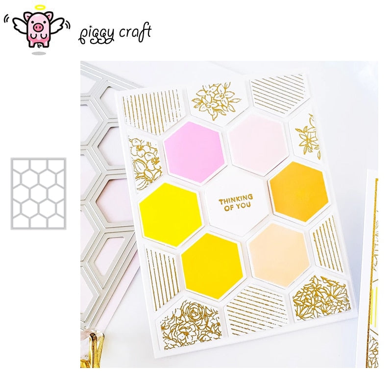 Piggy Craft metal cutting dies cut die mold Hexagon rectangle frame Scrapbook paper craft knife mould blade punch stencils dies