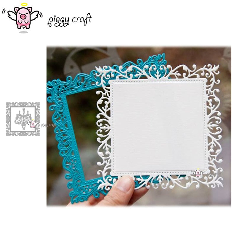 Piggy Craft metal cutting dies cut die mold Lace leaf vine square frame Scrapbook paper craft knife mould blade punch stencils