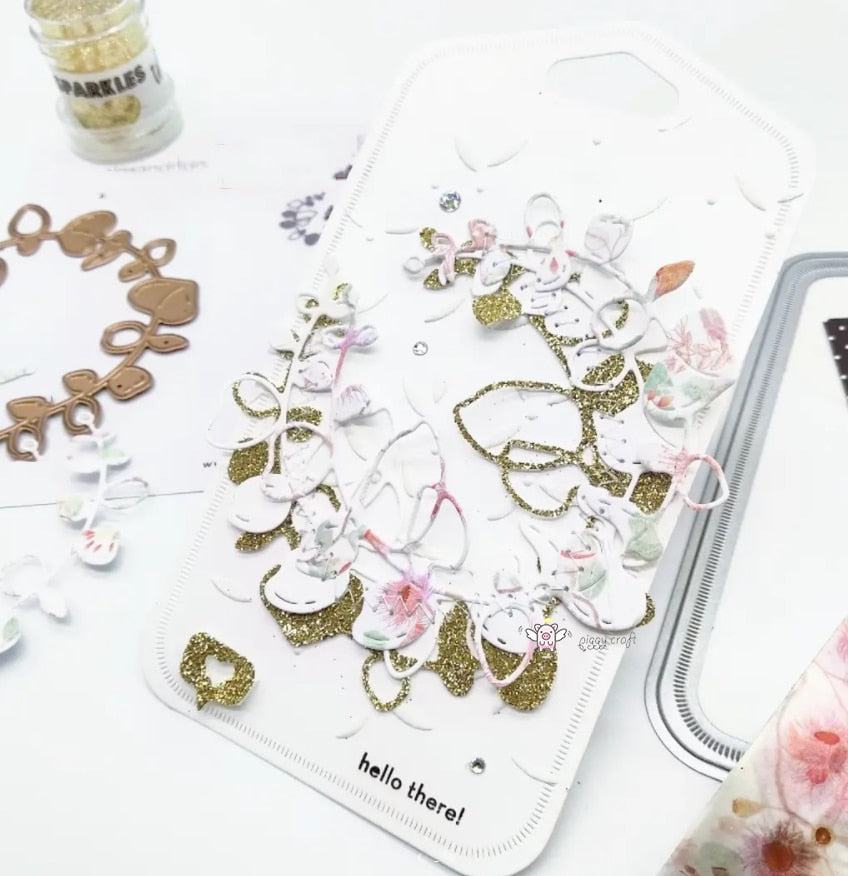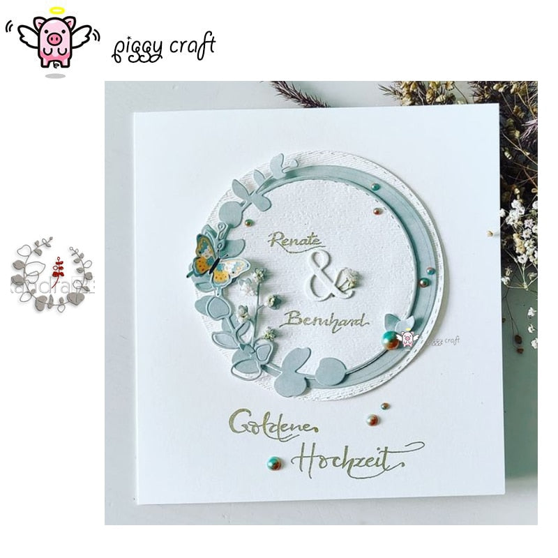Piggy Craft metal cutting dies cut die mold Leaf fruit circle wreath Scrapbook paper craft knife mould blade punch stencils