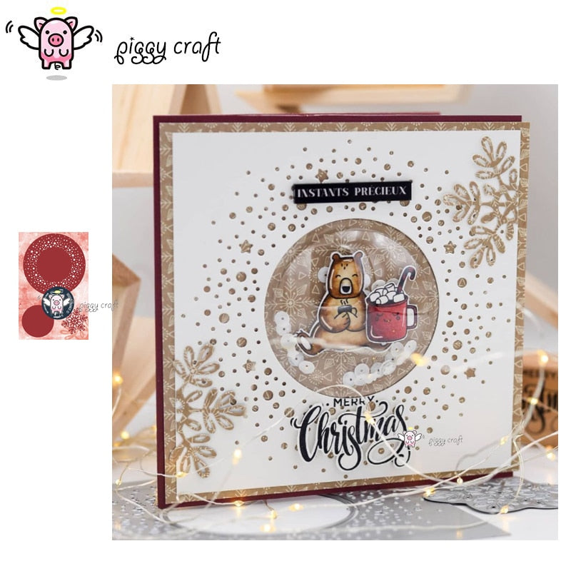 Piggy Craft metal cutting dies cut die mold Winter background frame Scrapbook paper craft knife mould blade punch stencils dies