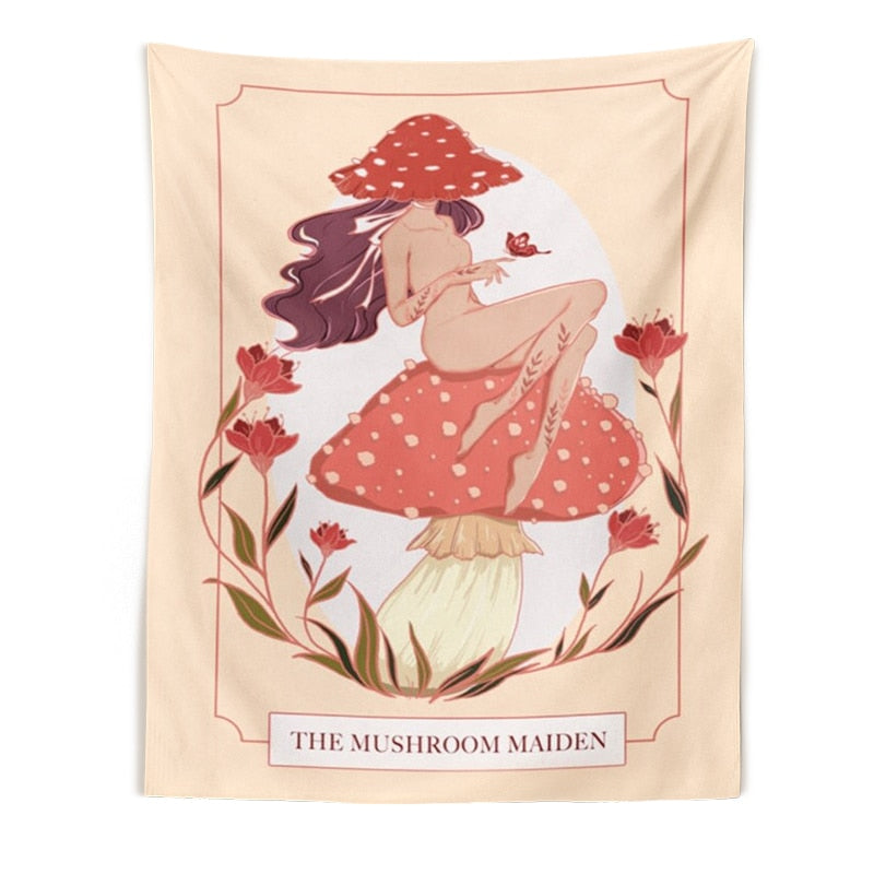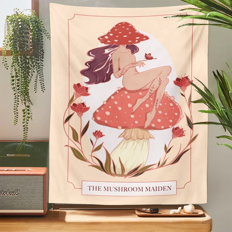 Pink Mushroom girl Tapestry Wall Decor Girls Dorm Room Wall Hanging Aesthetic Room Witchcraft Psychedelic Wall Decoration