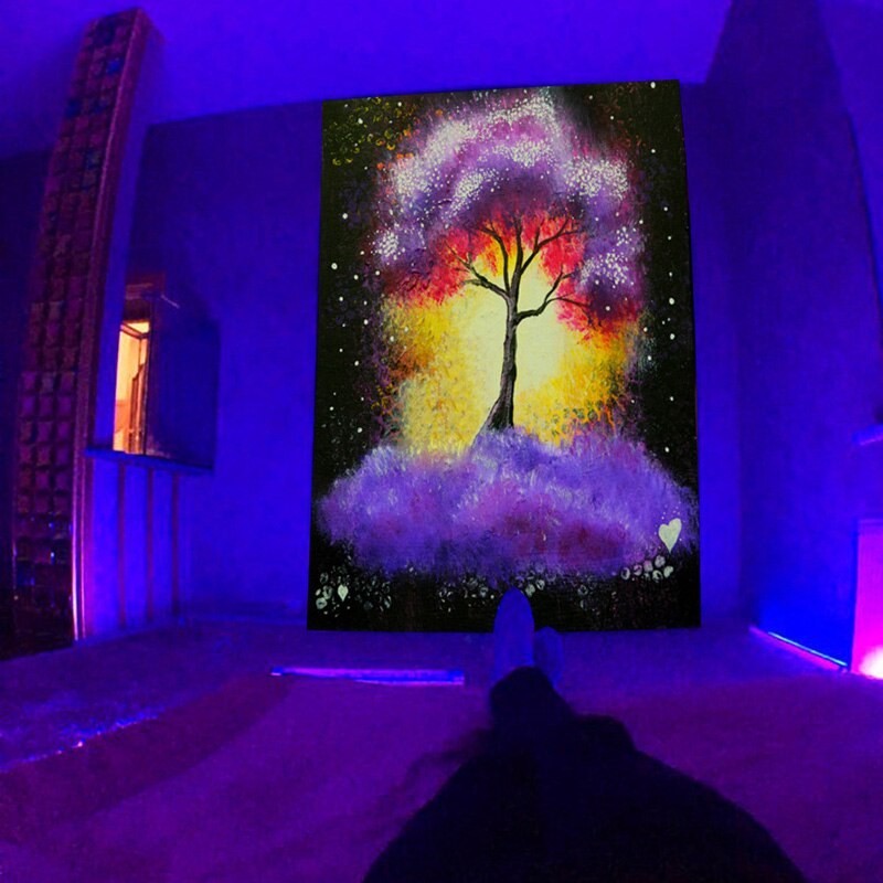 Psychedelic Skull Fluorescent Tapestry Glow Under Ultraviolet Light Mushroom Wall Hanging Cloth Hippie Decor Home Room Aesthetic