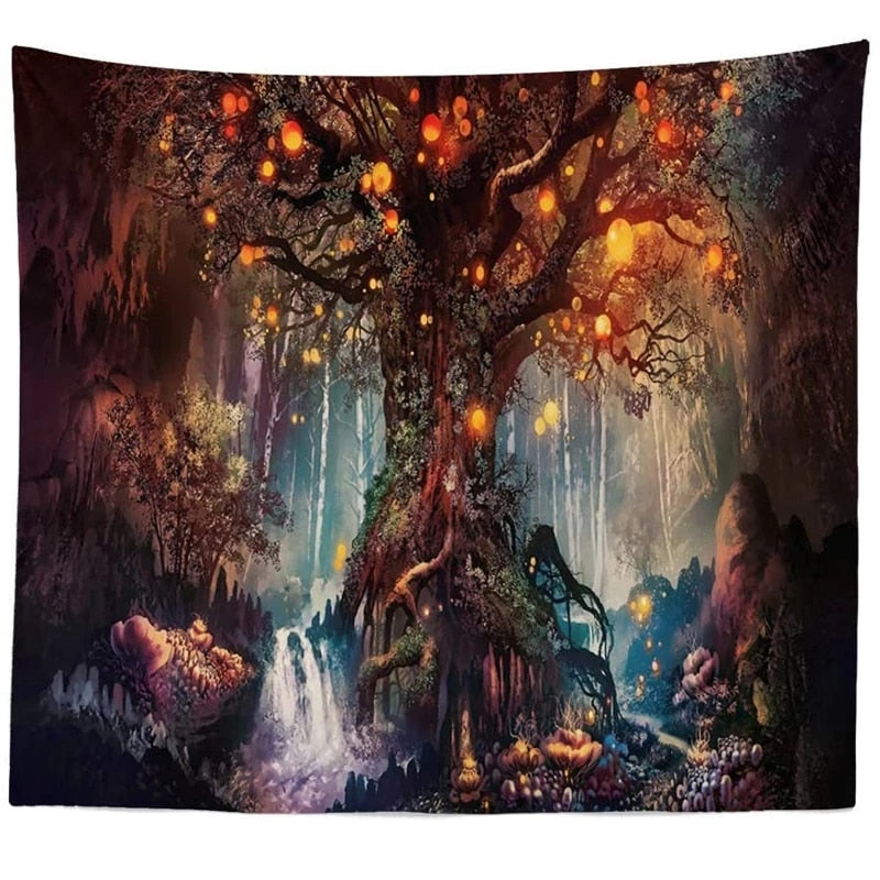 Psychedelic Trees Tapestry Wishing Lantern Trees Wall Hanging Landscape Wall Tapestry Carpet Bed Sheet Bohemian Hippie HomeDecor
