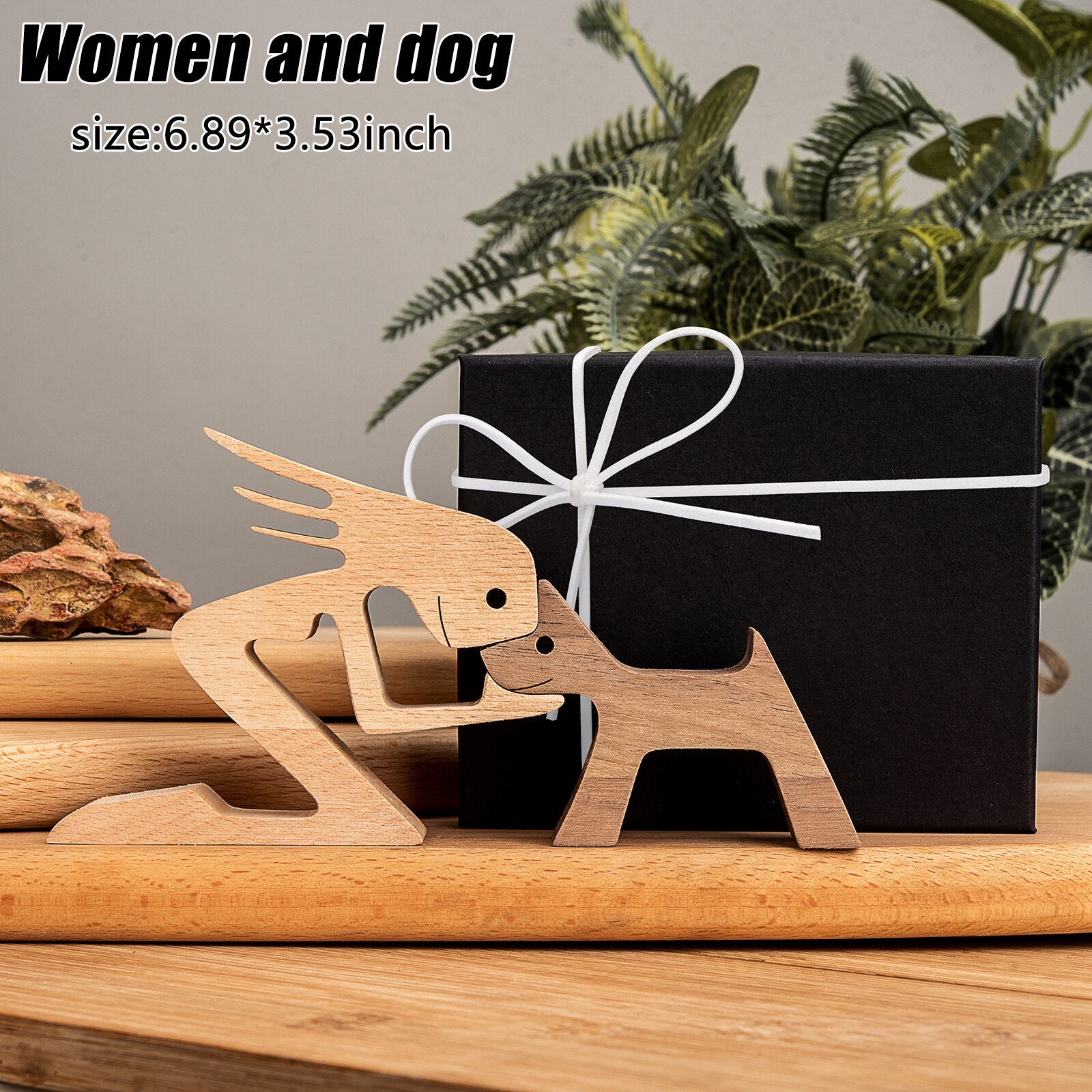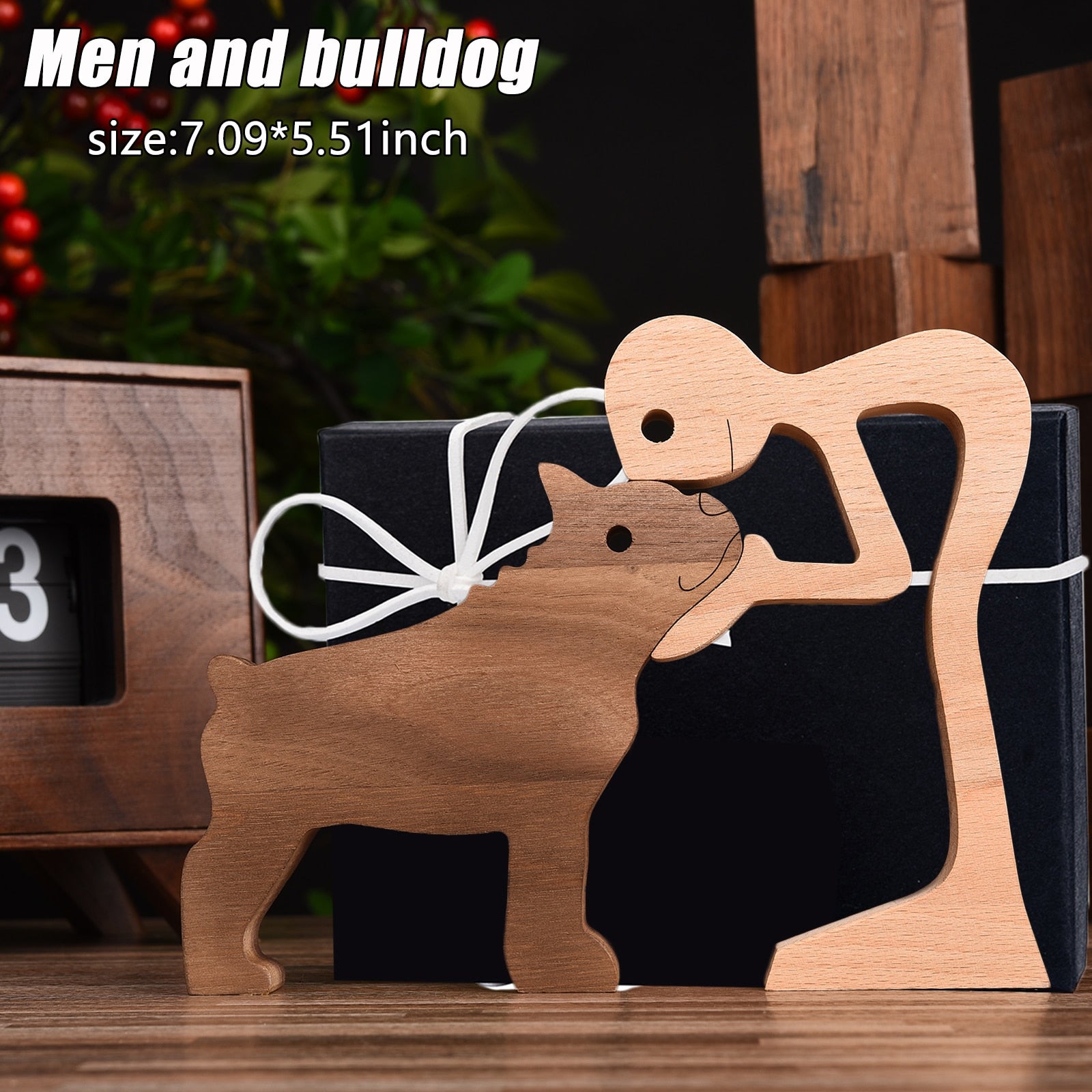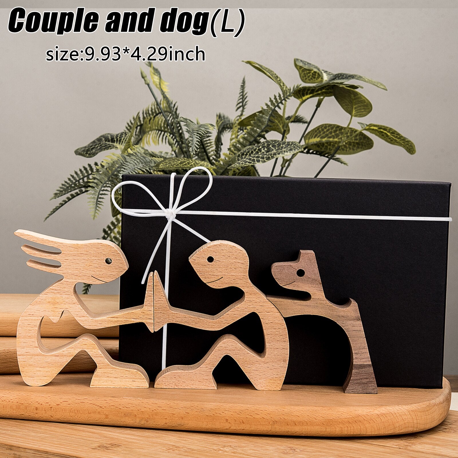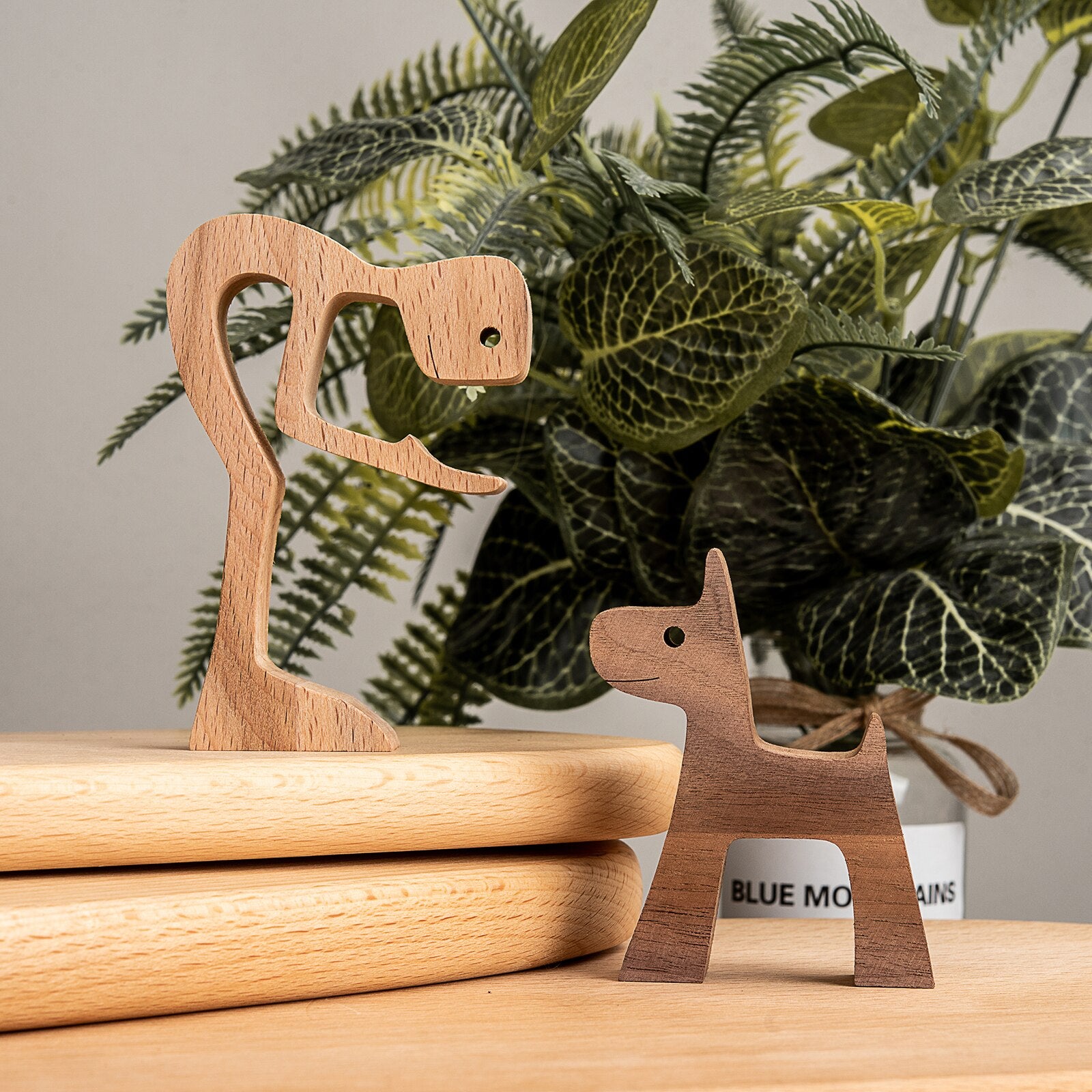 Puppy Family Wood Dog Carving Ornament Wood Dog Craft Figurine Desktop Table Ornament Home Decoration For Dog Pet Lover Gifts