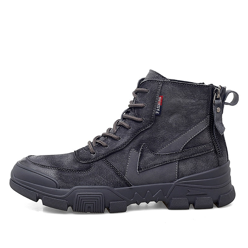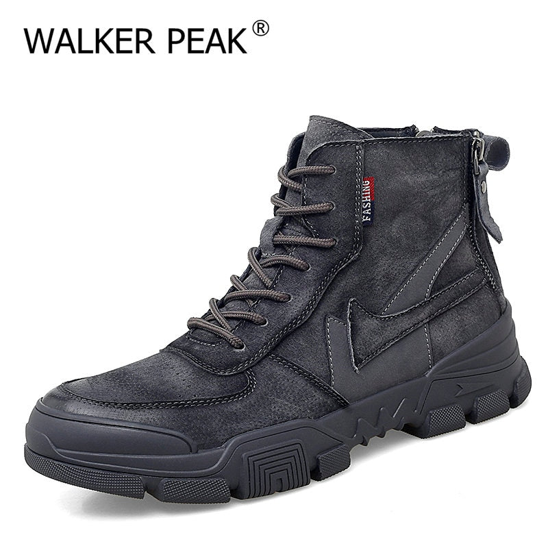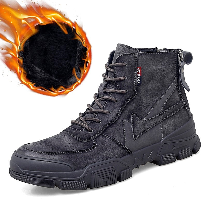 Retro Ankle Boots mens Warm Comfortable Wear-resistant Sole shoes Man Winter Motorcycle Boots back zip Male Walking Boots New