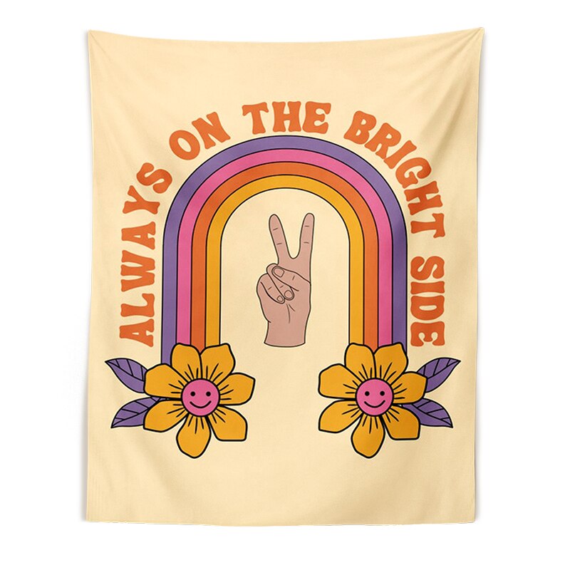 Retro Sun Tapestry Wall Hanging 80s 70s Aesthetic Wall Cloth Vintage flowers Hippie Decor Living Room Bedroom Bohemian Print
