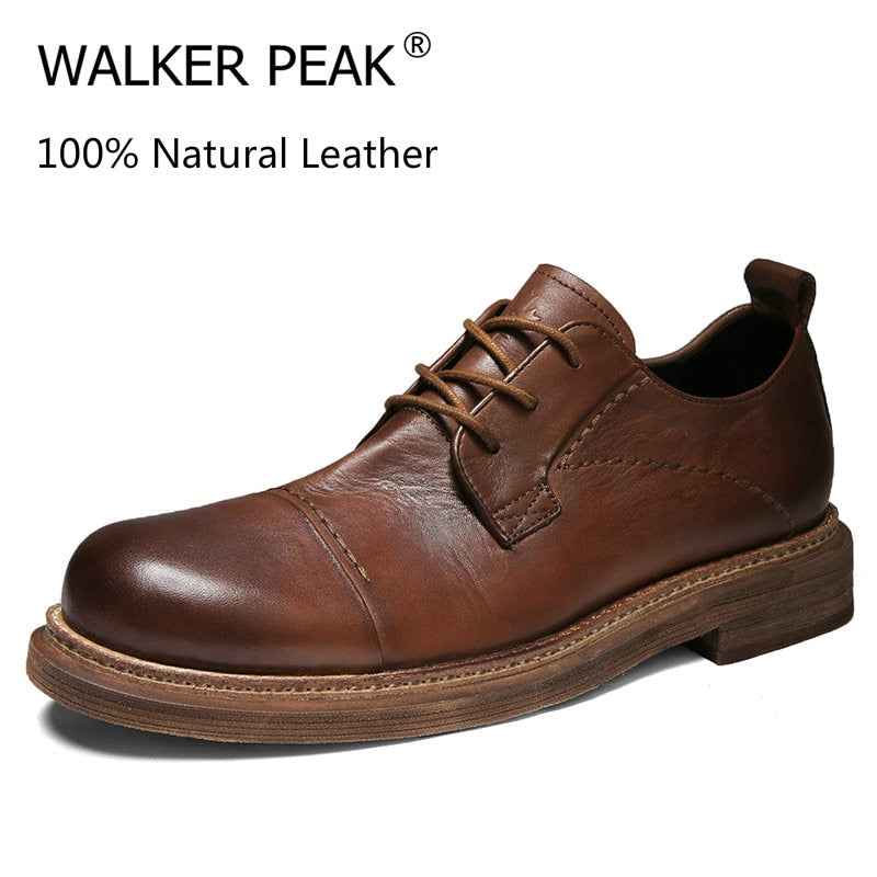 Retro Wrinkle 100% Genuine Leather Men Shoes lace up Mens Casual Shoes fashion Walking Flats Soft cow leather oxfords Moccasins