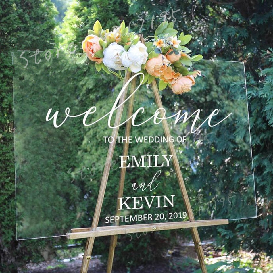 Rustic Wedding Decoration Removable Vinyl Wedding Sign Mirror Stickers Welcome Sign Decals Personalized Names Murals Art AZ538