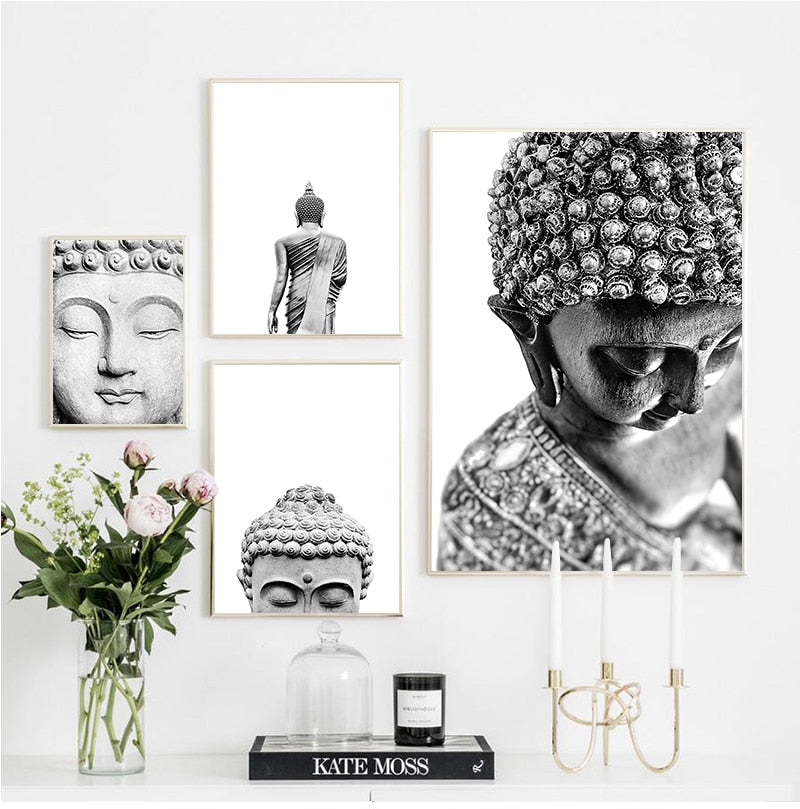 Sakyamuni Buddha Statue Qoutes Wall Art Canvas Painting Black White Nordic Posters And Prints Wall Pictures For Living Room