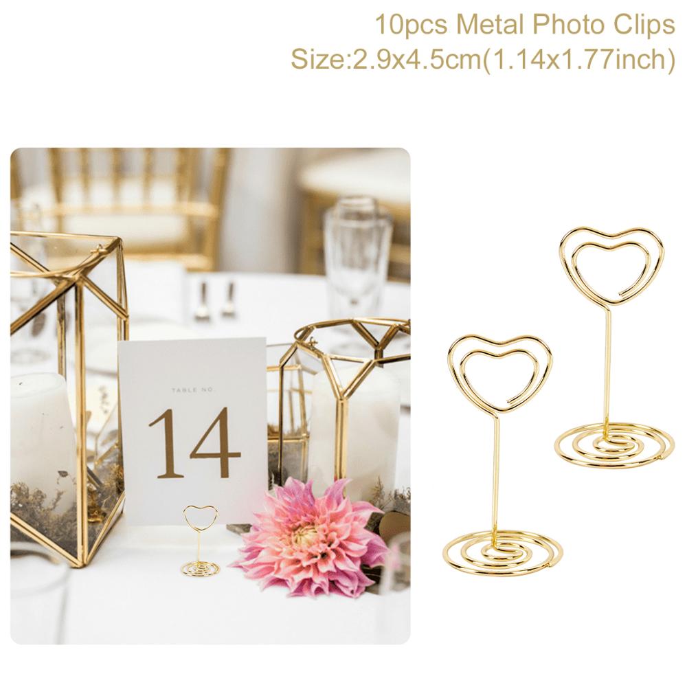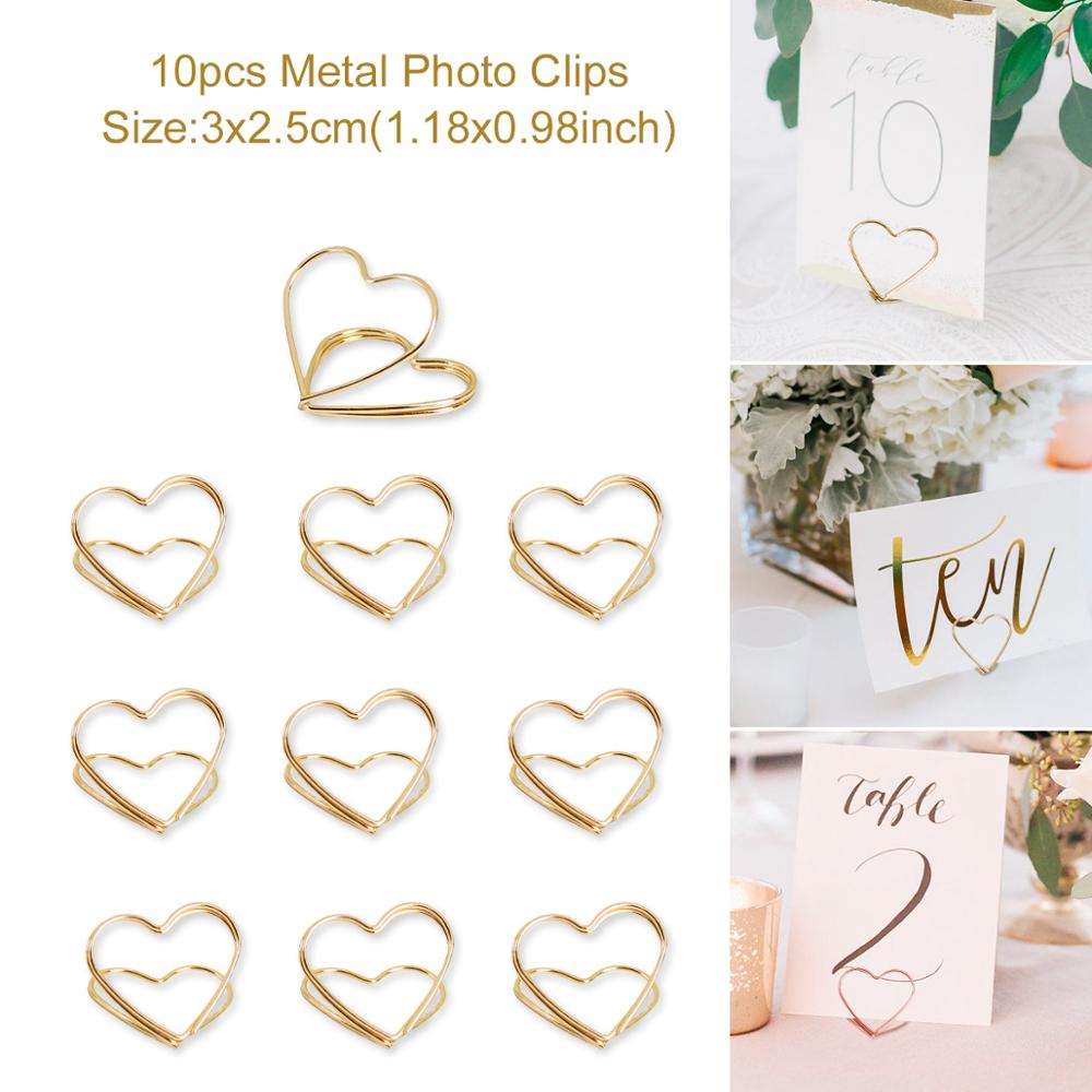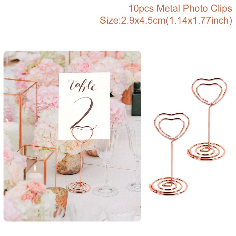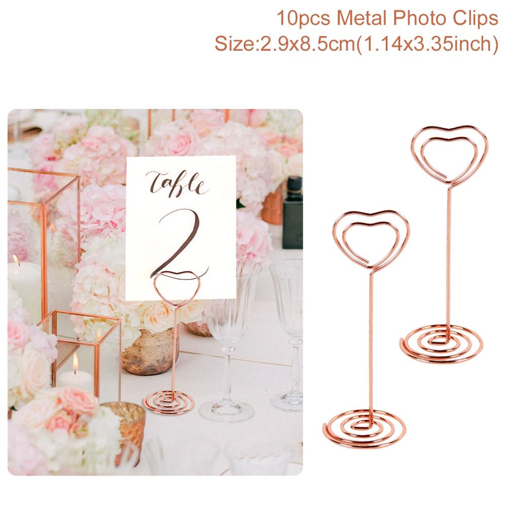 Staraise 10pcs Rose Gold Romantic Heart Shape Metal Photo Clips Wedding Desktop Decoration Table Number Stand Party Supplies