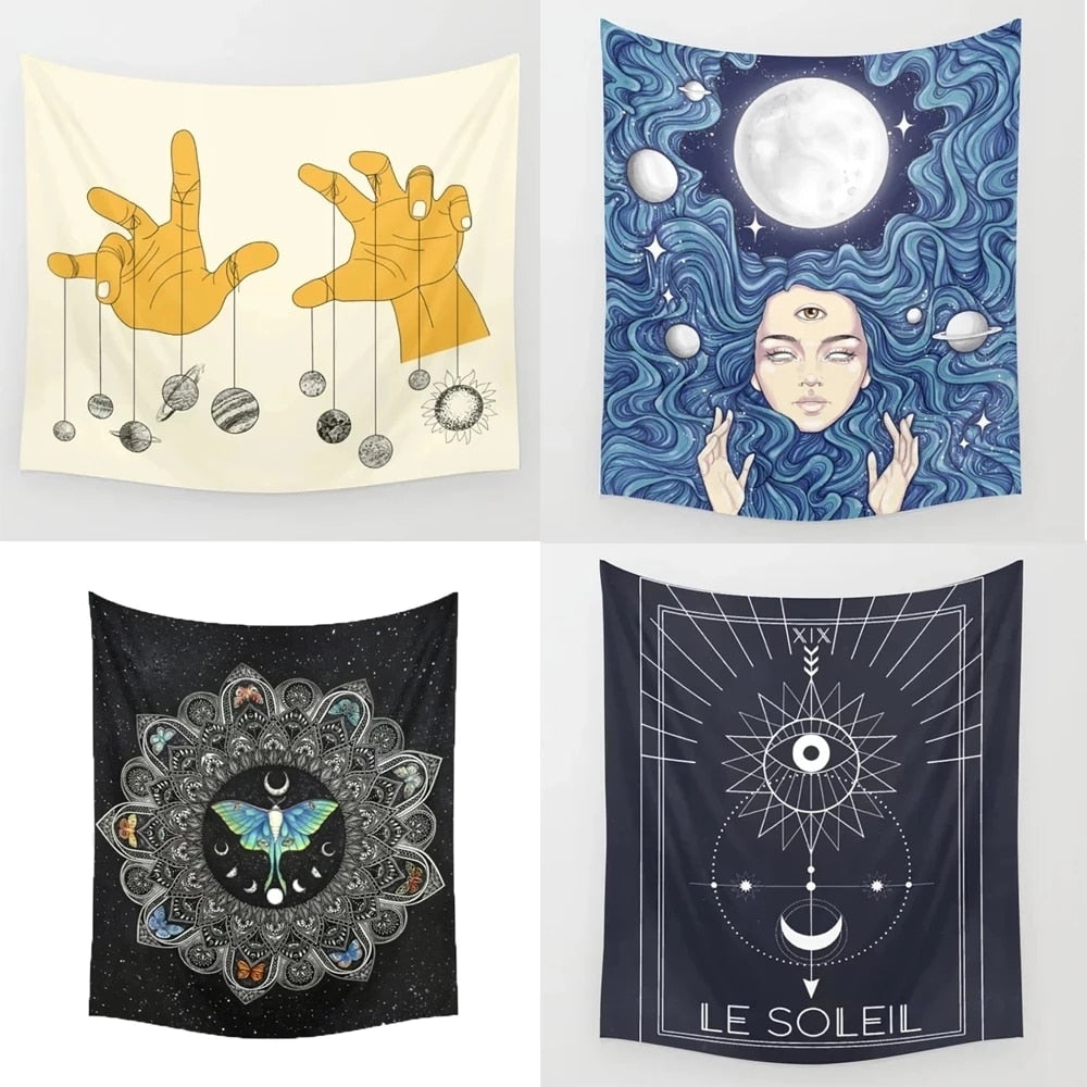 Tarot Tapestry Boho Tapestry Wall Hanging Moon Phase Magic Hand Tapestries Bedroom Decor Bedspread Cover Sun Moon Wall Decor