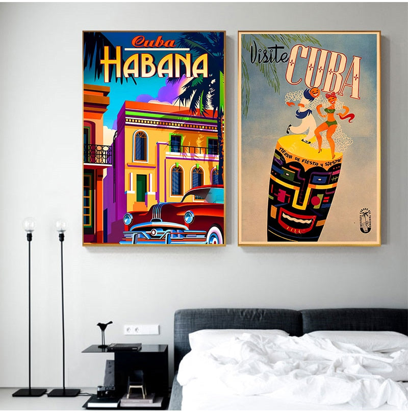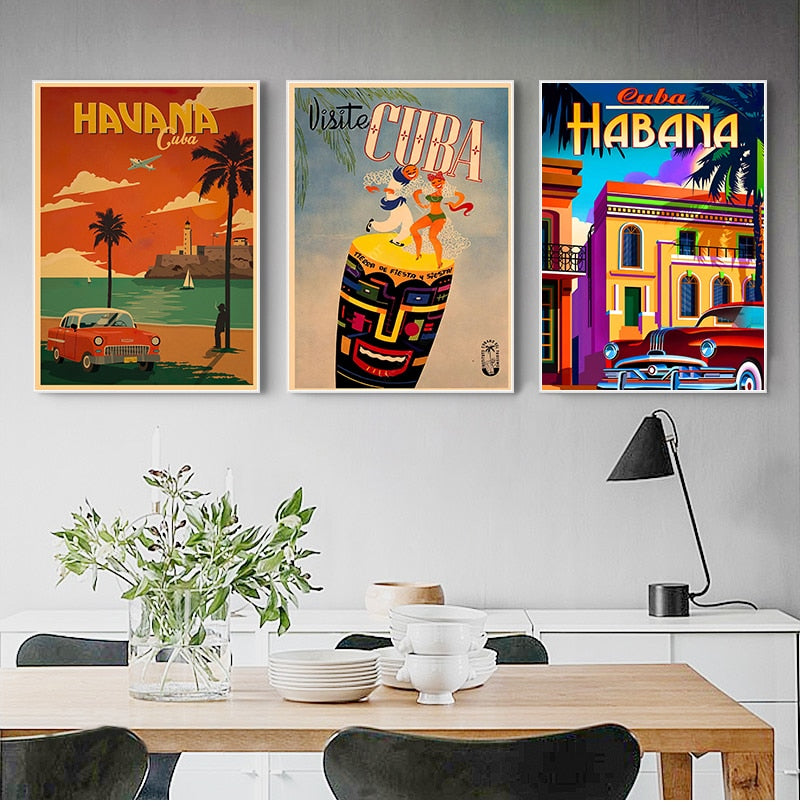 Travel to Cuba Havana Canvas Painting Vintage Wall Pictures Kraft Posters Coated Wall Stickers Home Decoration Pictures Gift