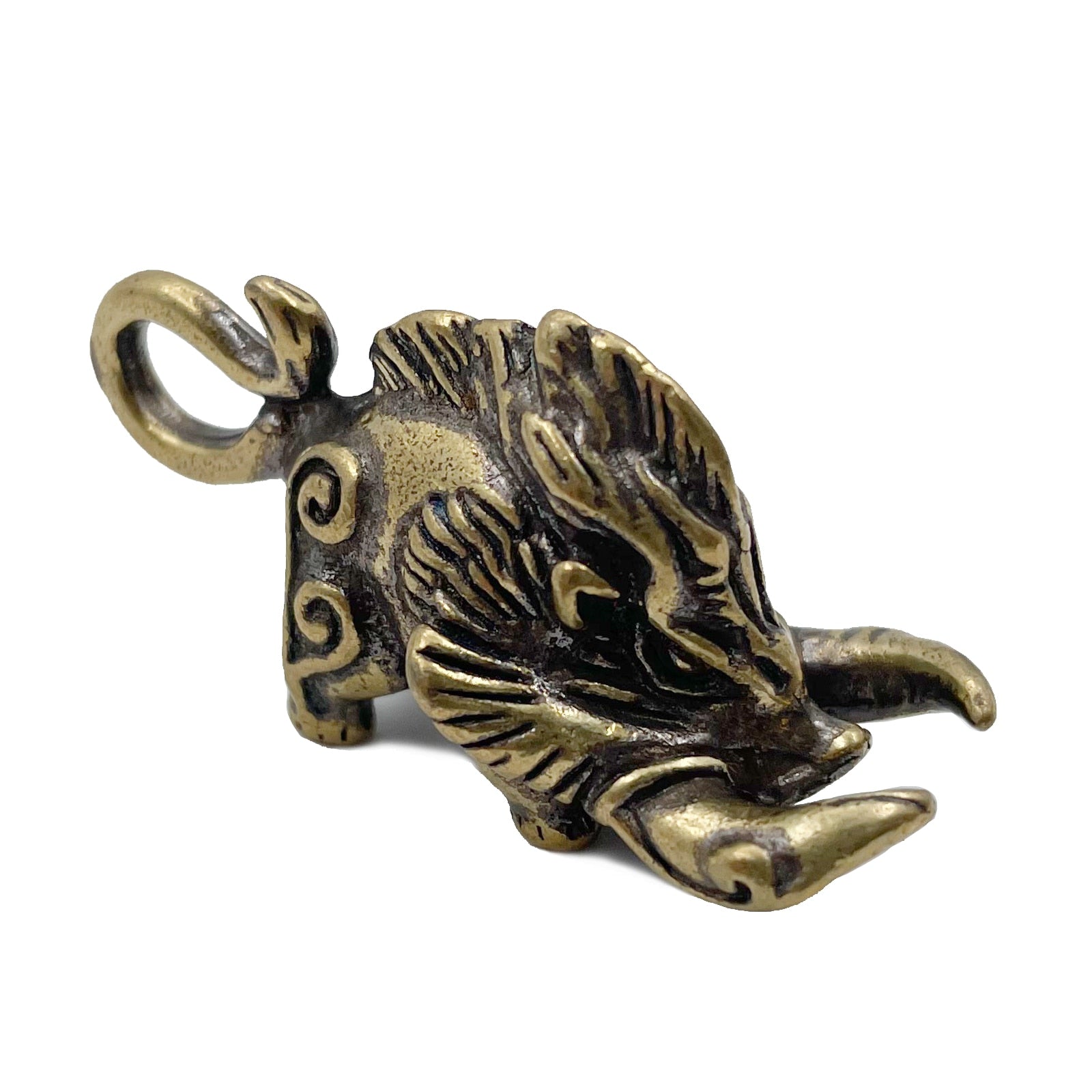 Viking Wild Boar Brass Keychain Keyring Pendants Vintage Copper Nordic Animal Pig Doll Toy Car Key Chain Rings Charms Jewerly