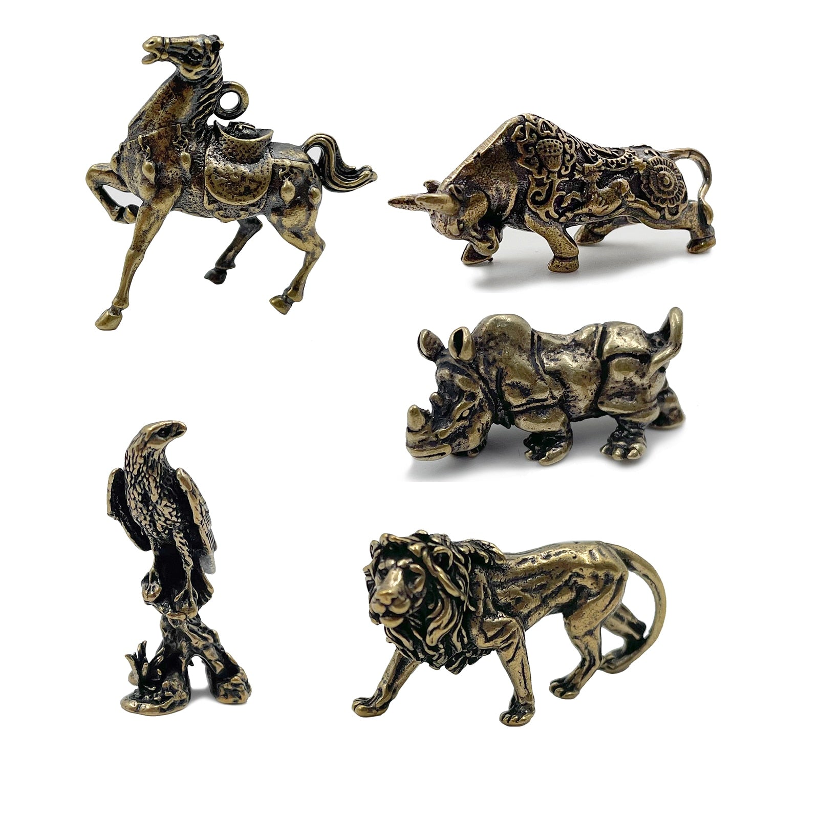 Vintage Copper Animals Eagle Lion King Bull Rhinoceros War Horse Figurines Desk Ornament Home Decoration Accessories Brass Craft