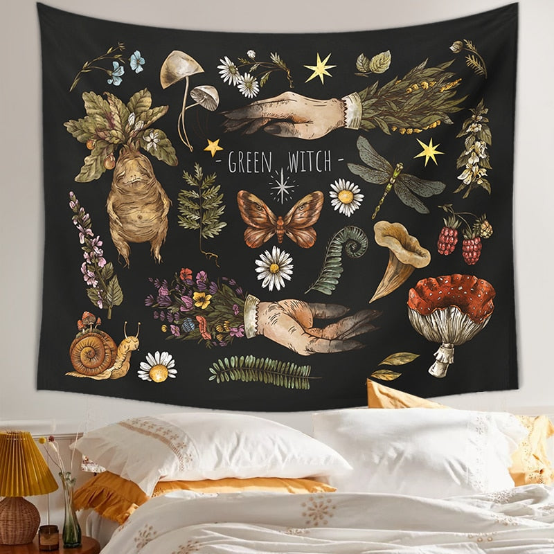 Vintage magic mushrooms Tapestry Wall Hanging witch hands mandrake root mushrooms plants Home Decor Decoration Mural Decor