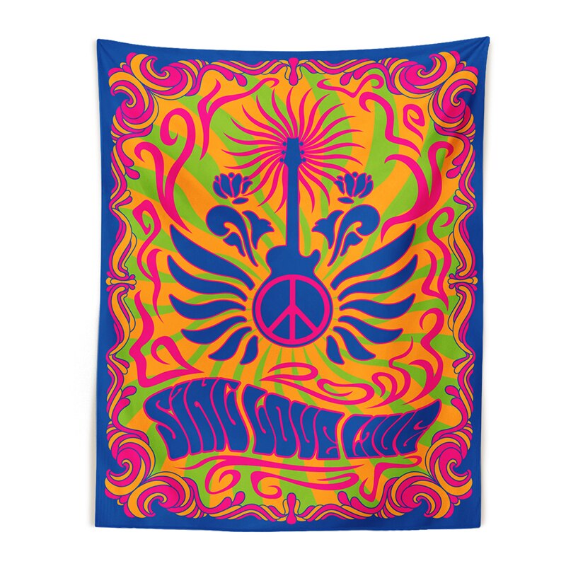 Vintage music poster Tapestry Wall Hanging stylized 60s 70s psychedelic background peace symbol eye floral Home Decor Wall Decor