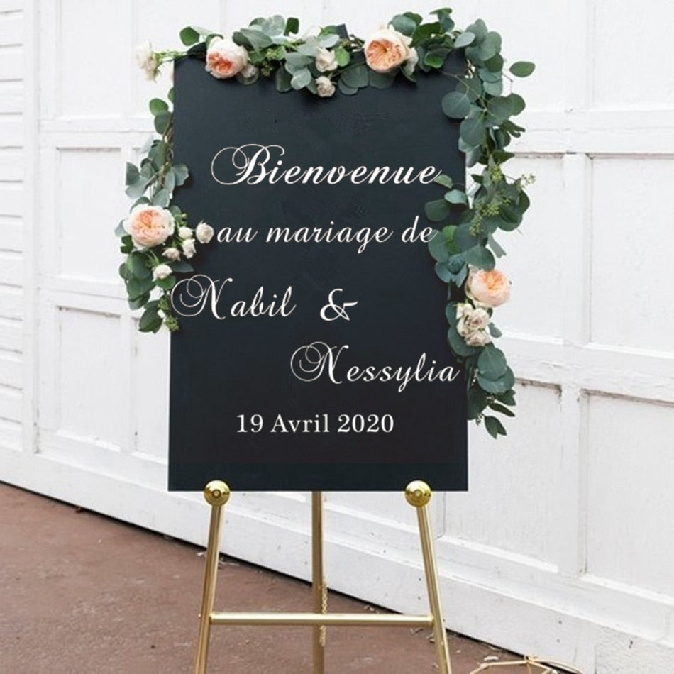 Welcome Wedding Mirror Decal Custom Names Date Vinyl Wall Sticker Wedding Sign Graphic Venue Decor Wall Art Poster French AZ211