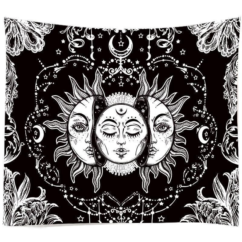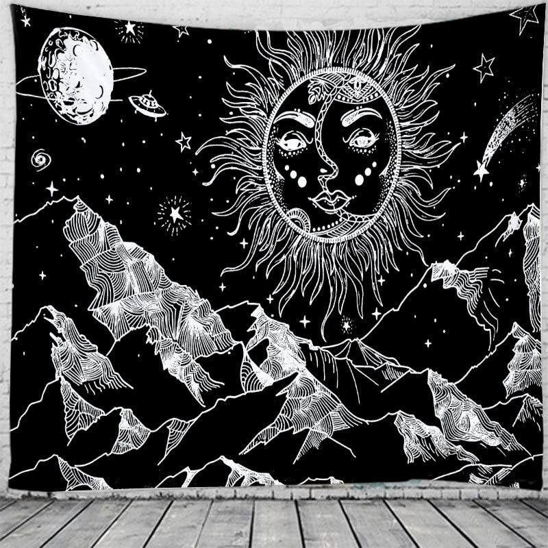 White Black Sun And Moon Tapestry Gossip Tapestries Mandala Tapestry Wall Hanging Hippie Wall Rugs Dorm Decor Blanket 95x73cm