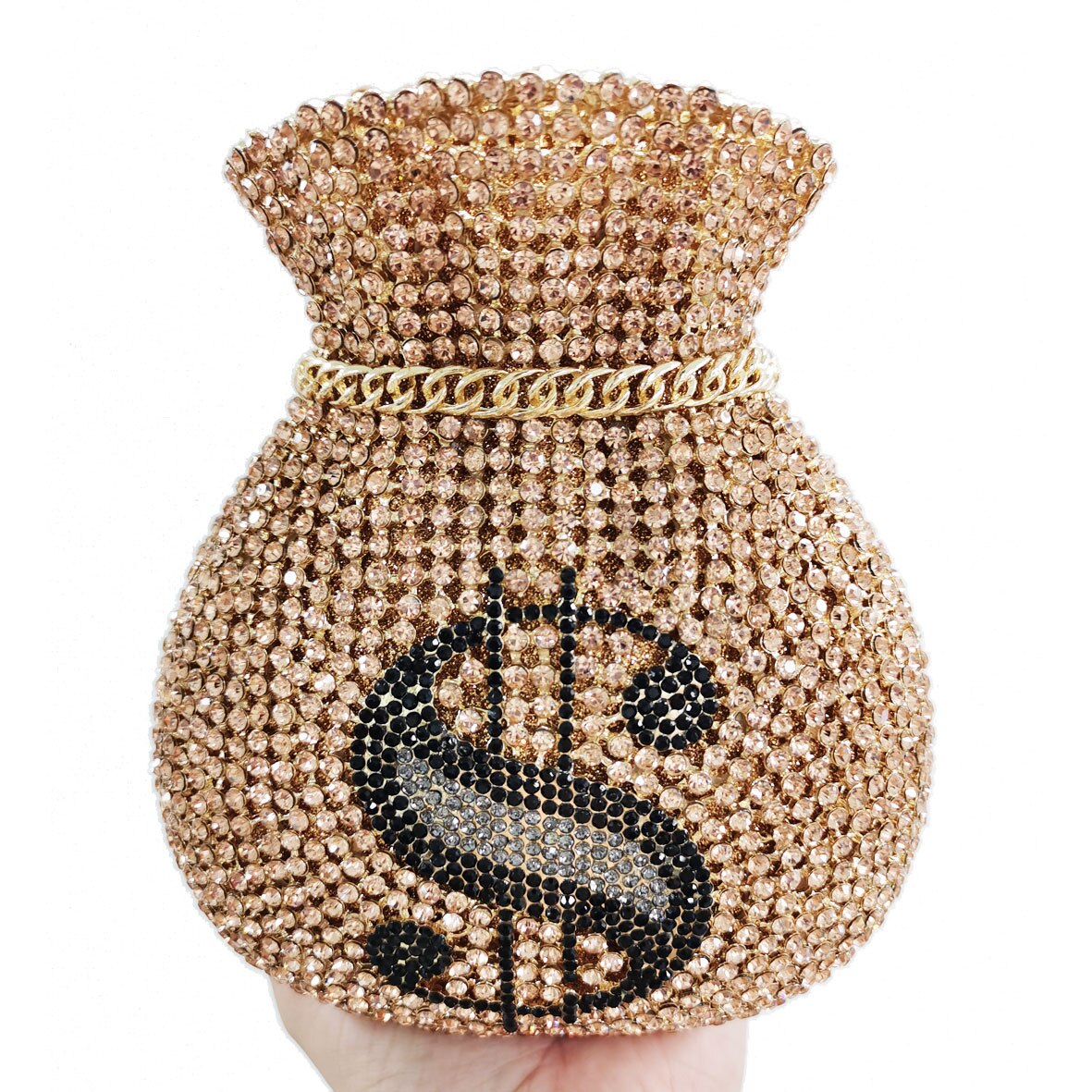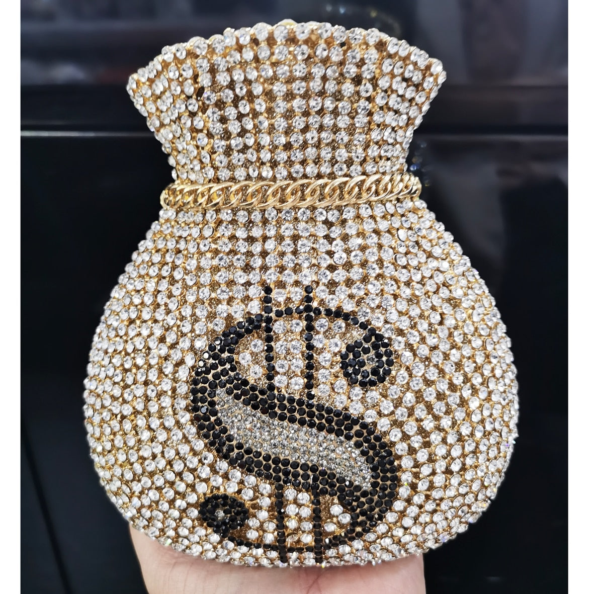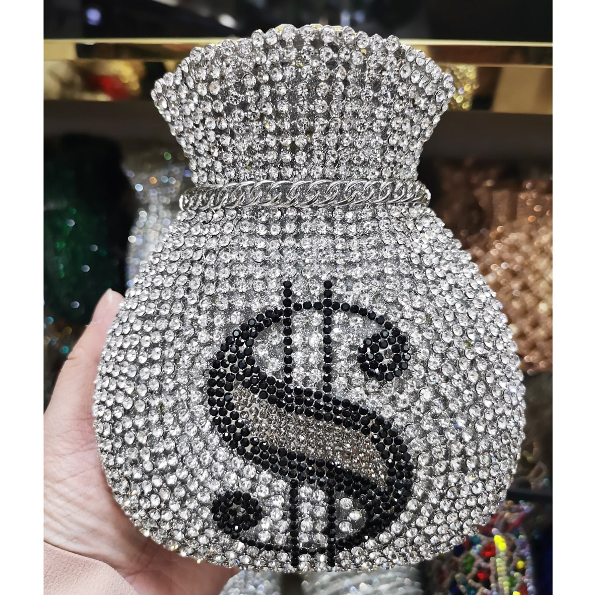 Wholesale Dollar Designer Crystal Clutch Bags Wedding Bridal female pochette Purse boutique banquet Evening Bags sm80