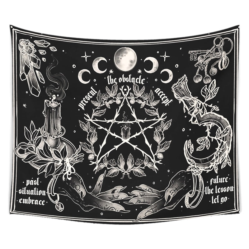 witchcraft Tapestry White and Black Floral Hands Psychedelic magic Hippie Boho Wall Hanging Divination Tapestry bedroom decor