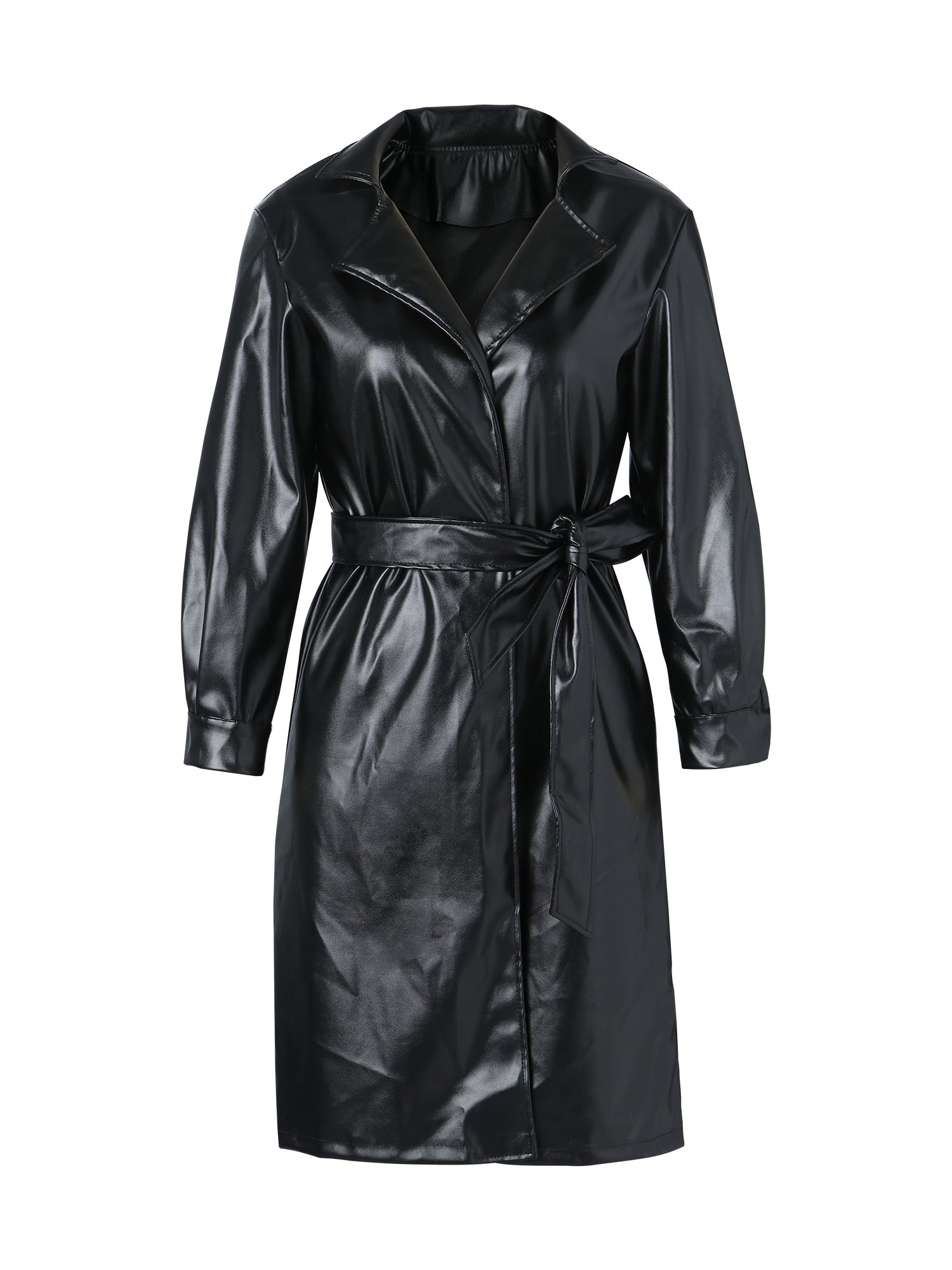 Women Autumn PU Leather Long Sleeve Dress With Belt Black High Waist Sexy V neck Dresses For Office Ladies Elastic Club Outfits