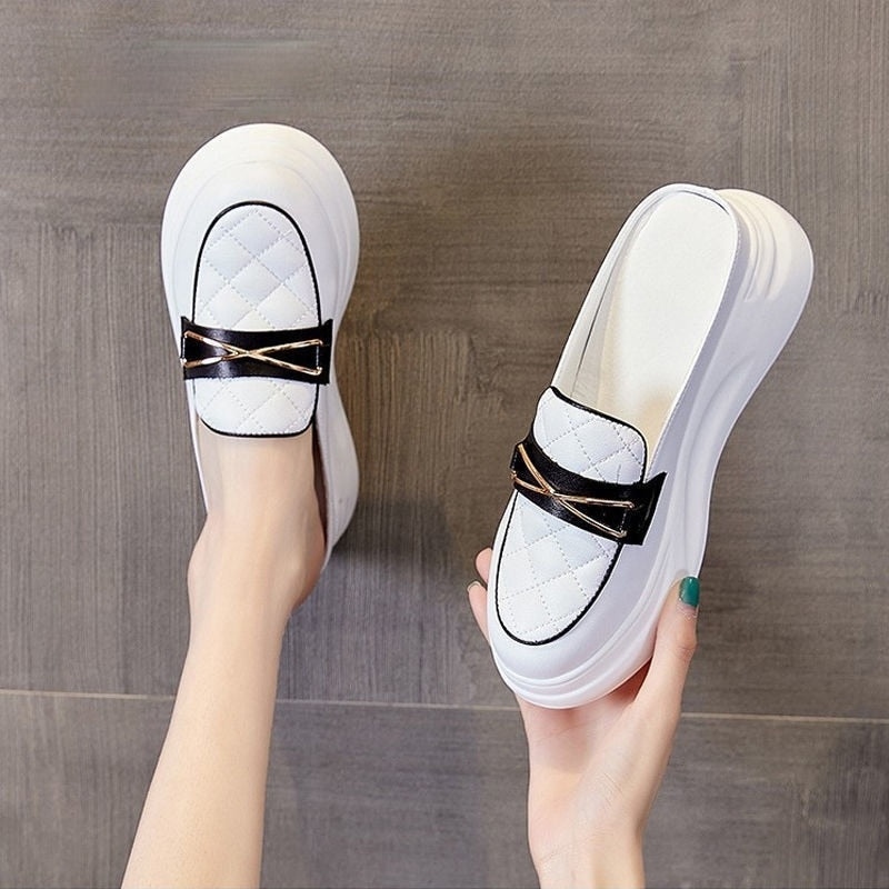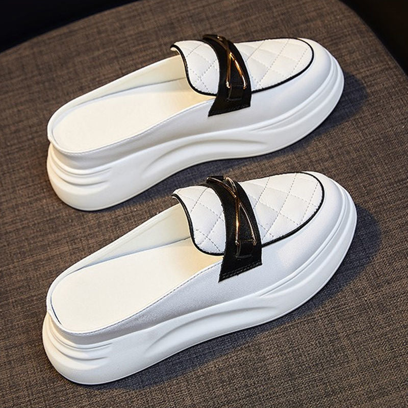 Women's White Shoes Closed Toe Half Slippers 2021 Summer New Ins Versatile Breathable Platform Platform Casual Lady Shoe Sandals