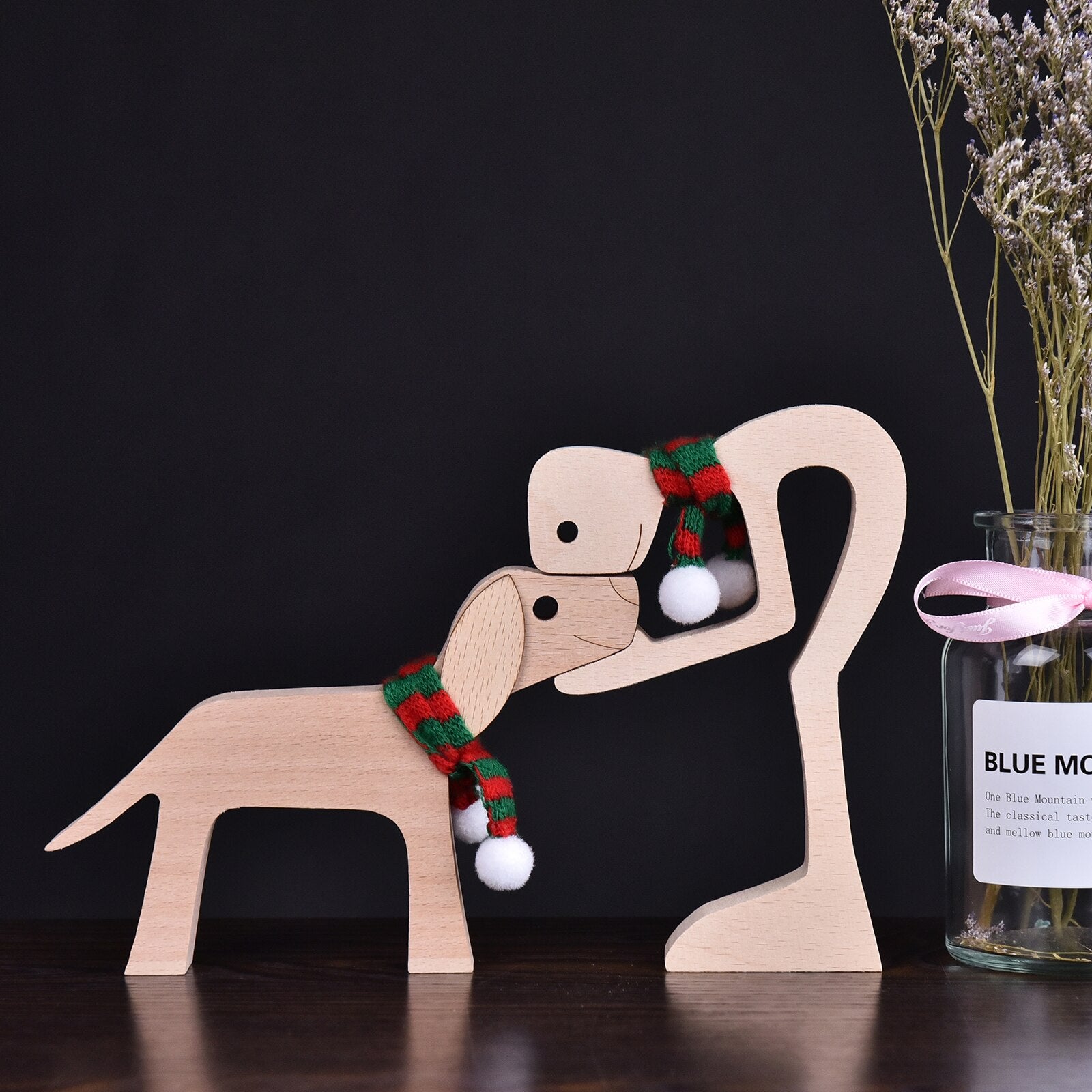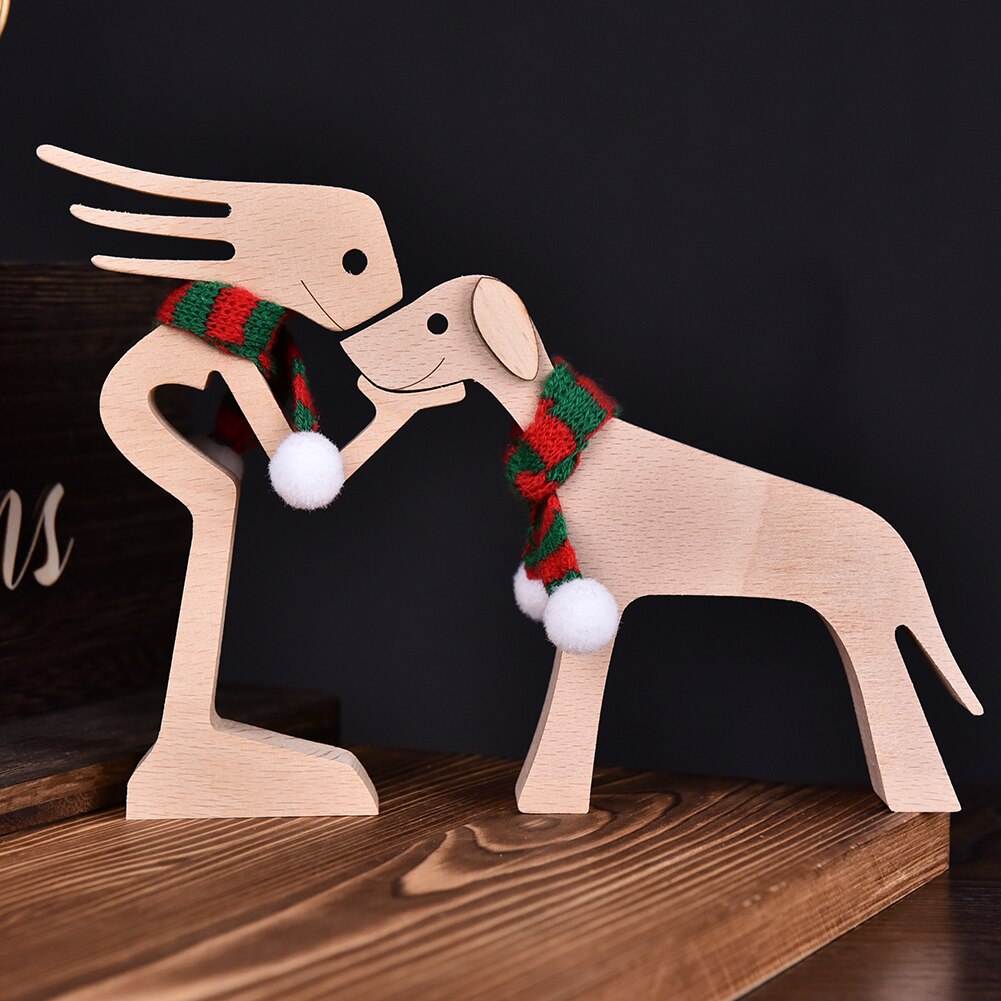 Wooden Dog Christmas Ornaments For Home Decor Craft Figurine New Year's Decor Creative Home Decoration Lovely Gift