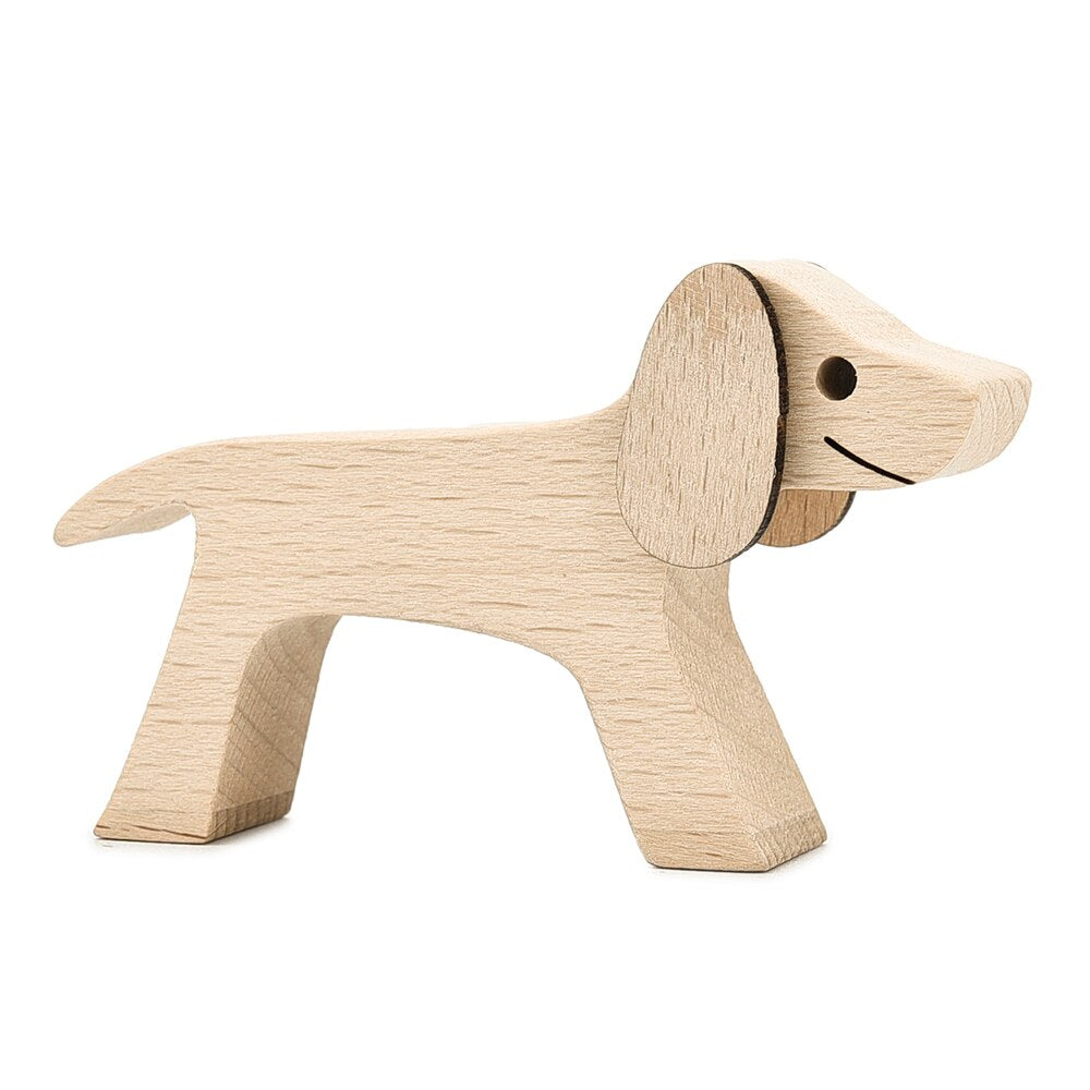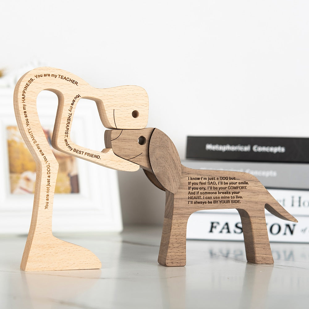 Wooden Dog Decoration Craft Figurine Family Puppy Table Ornament Wood Carving Model Creative Decoration For Lovely Gifts